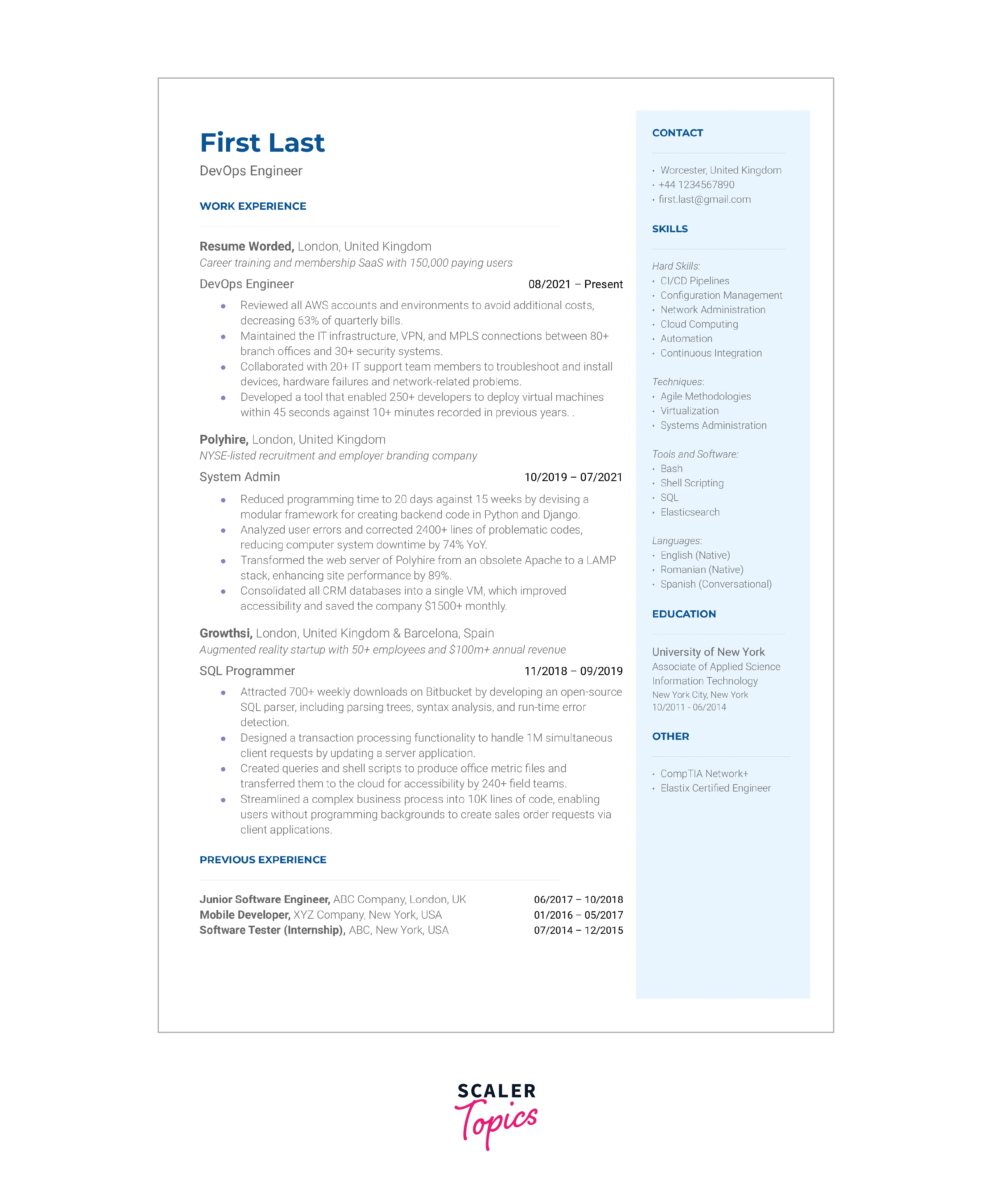 - From this article, We have learned how to write a perfect DevOps Engineer Resume.