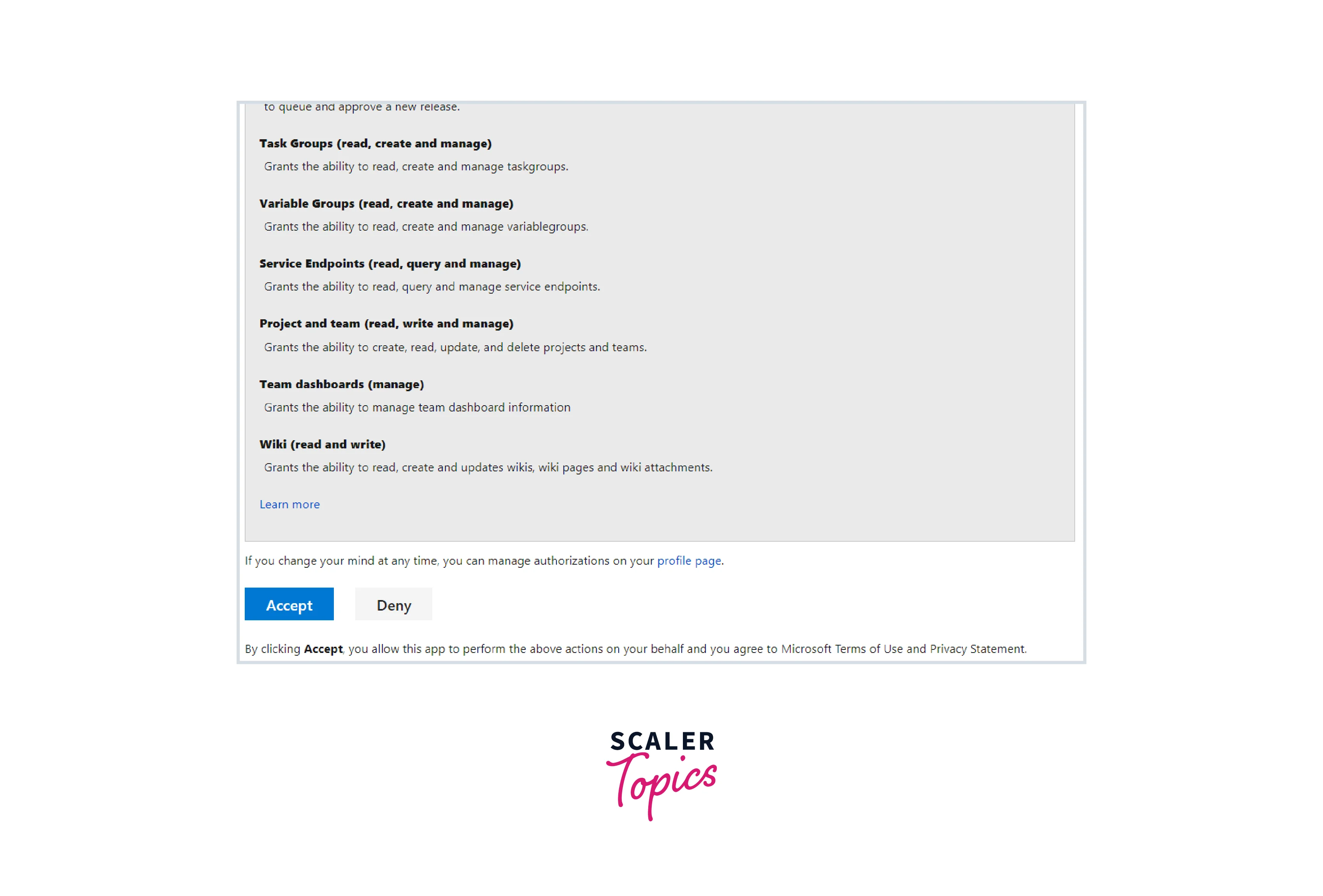 A page appears with some permission requests. Click on Accept.