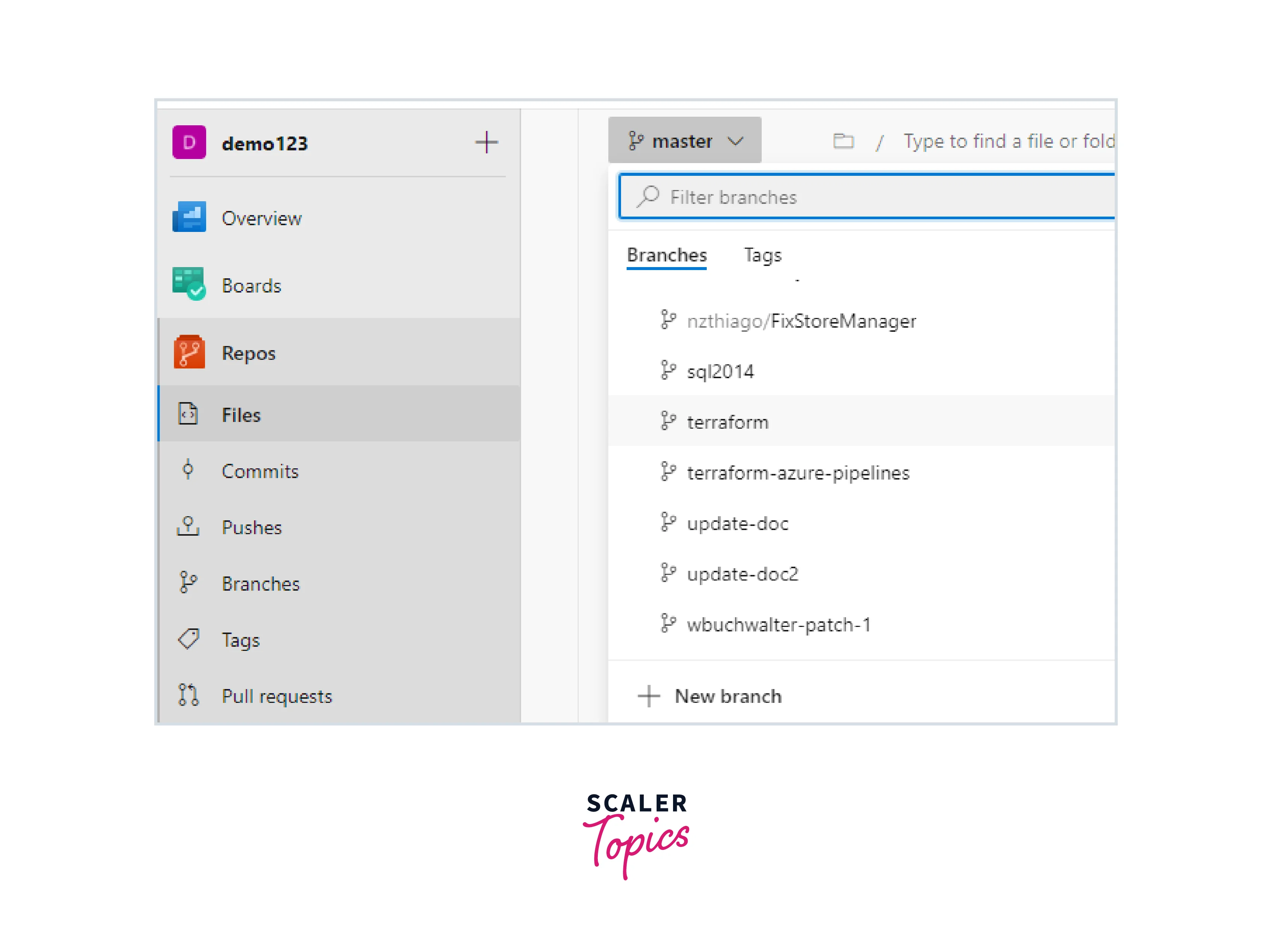 - Click Repos and choose the terraform branch.
