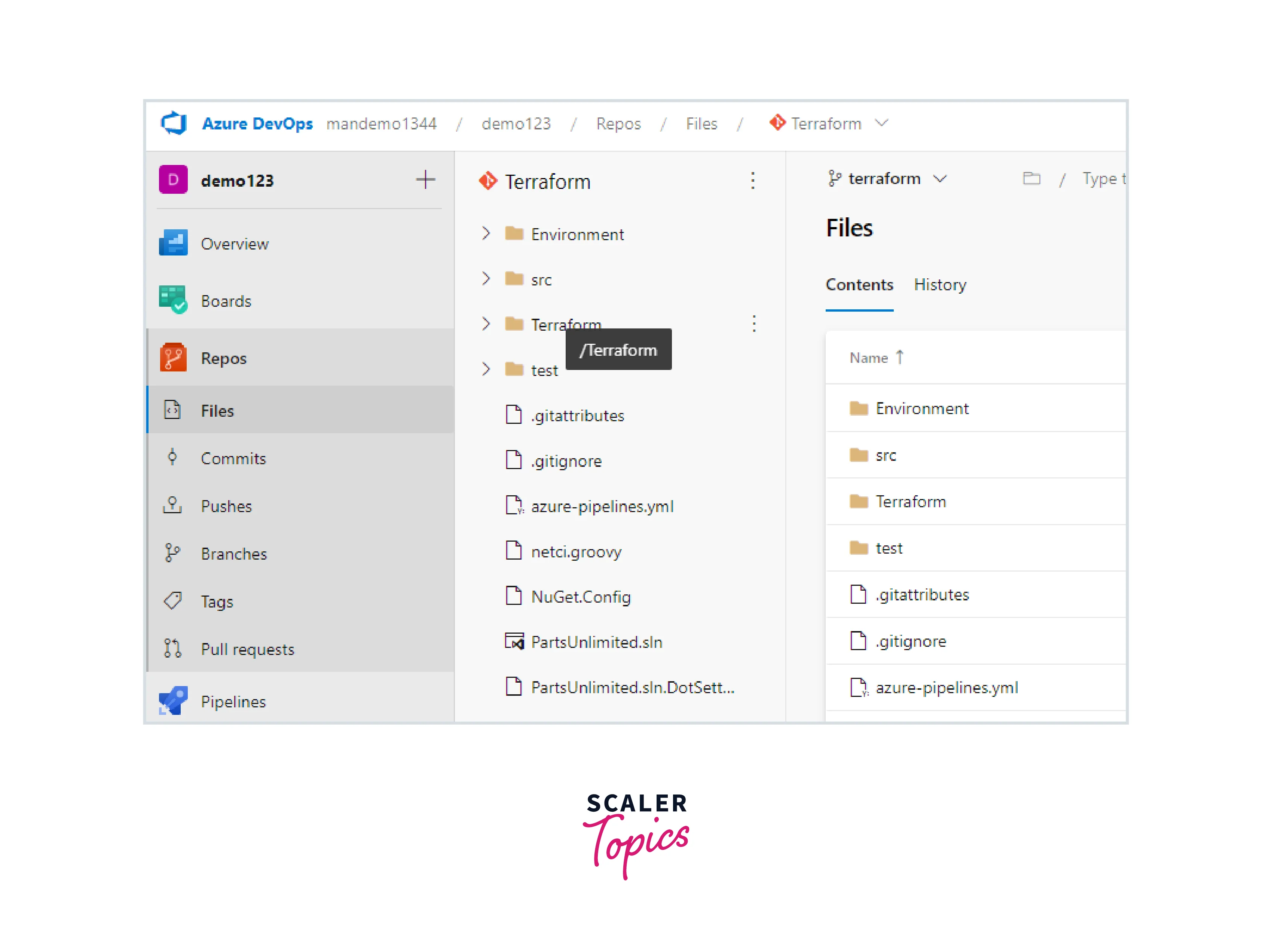 - Verify that the Terraform folder is in the repository and that you are on the Terraform branch.