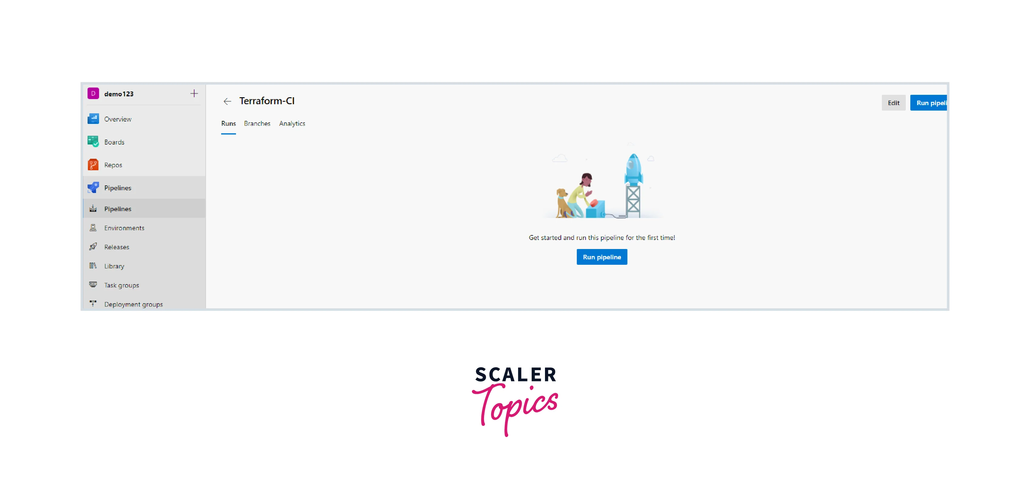 - Choose Pipelines from the menu. Click Edit after choosing Terraform-CI.
