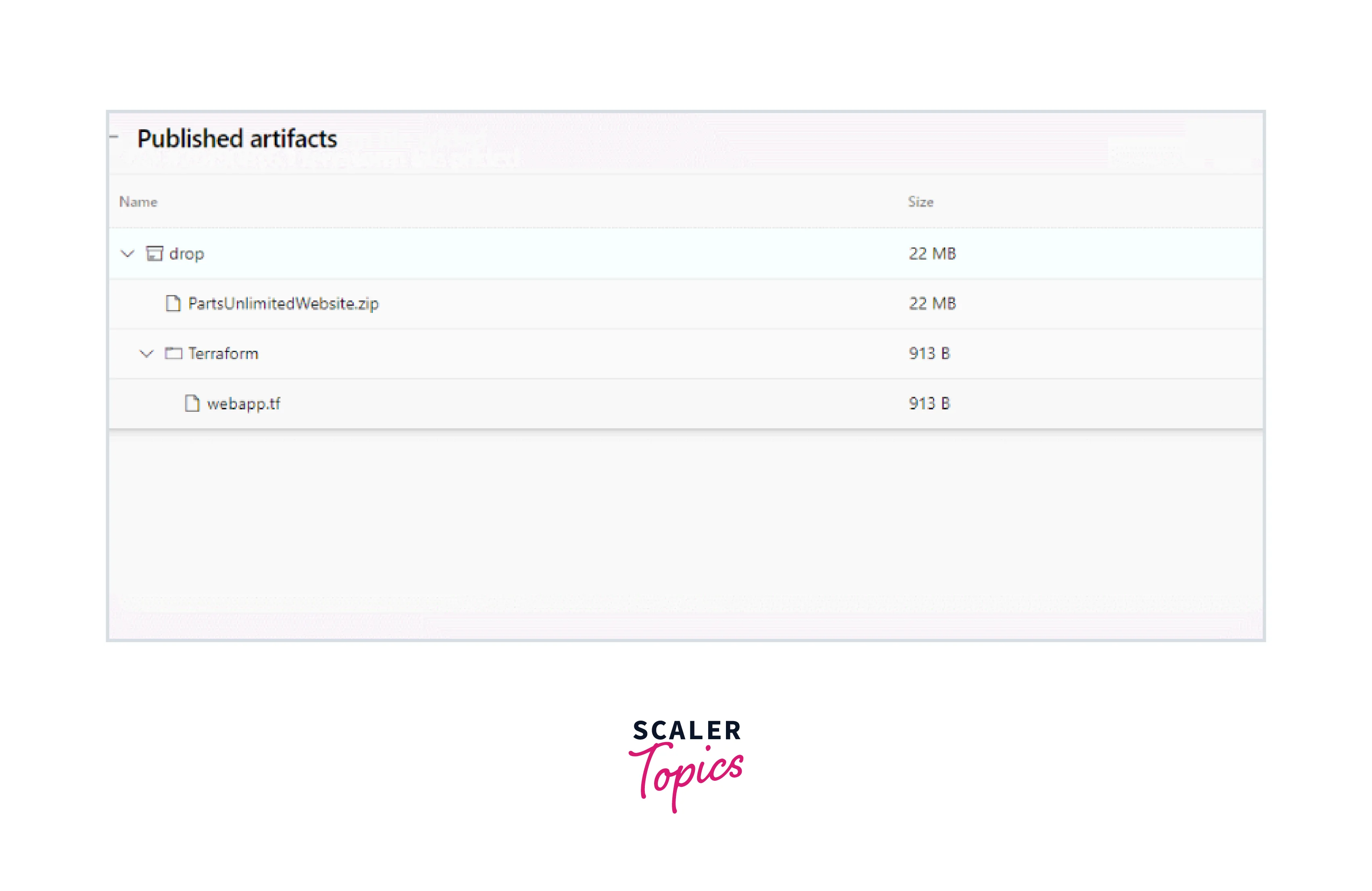 - It shows the artifacts with Terraform folder and PartsUnlimitedwebsite.zip file in the drop.