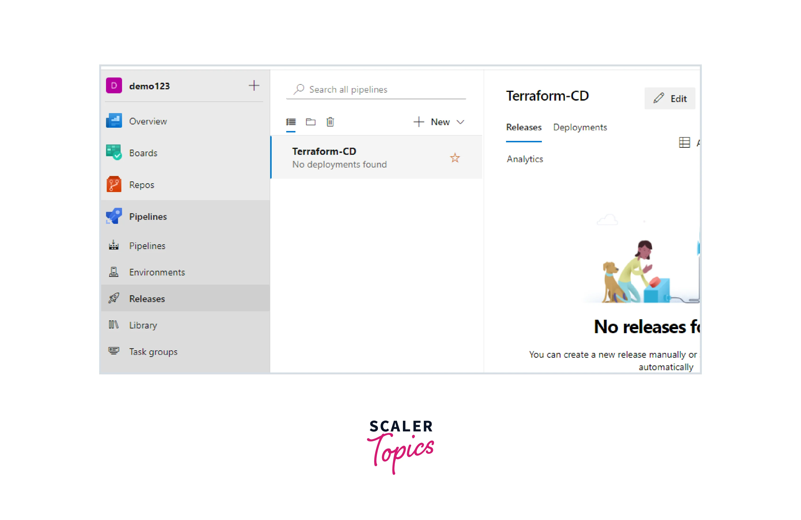 - Click on the Releases of the Pipelines menu. Click on Edit.