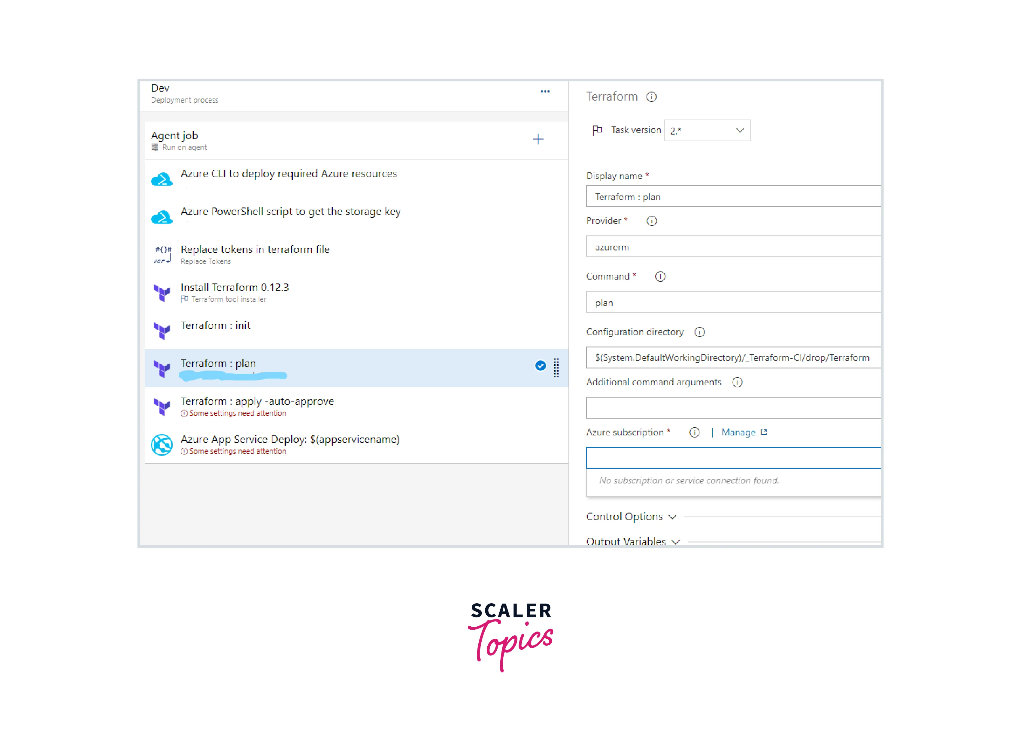 - Proceed to the Terraform plan task, and verify with the Azure subscription.