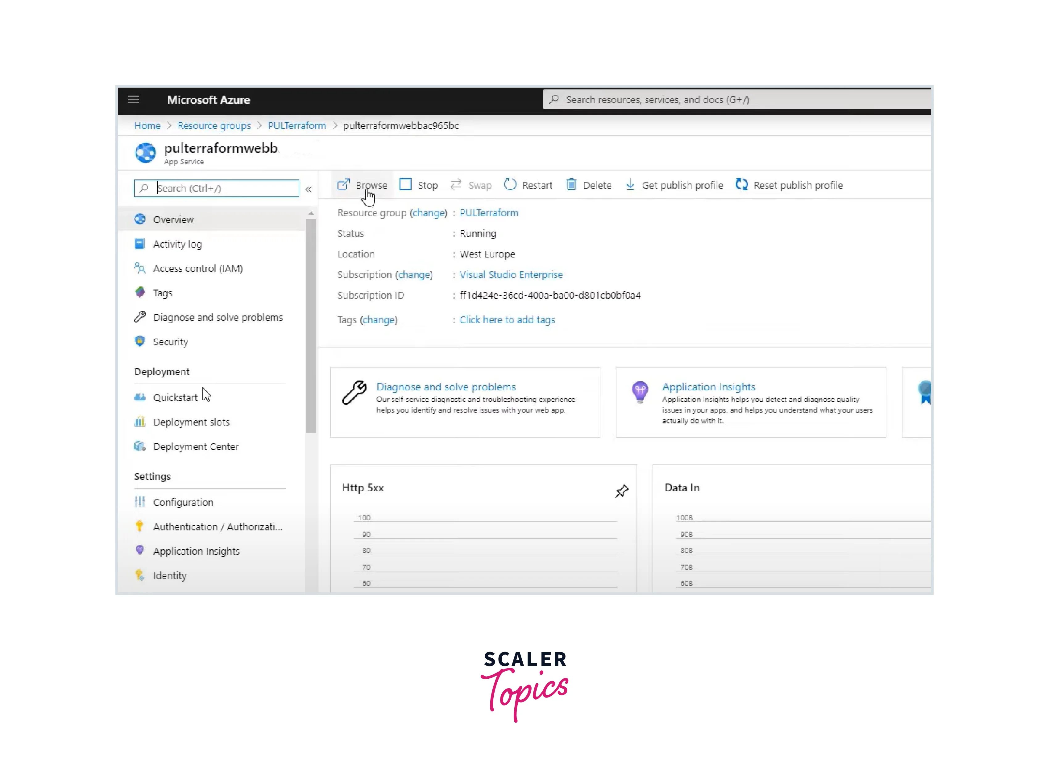- After the release, go to the Azure portal and search pulterraformweb in-app services. Click on it to open. Next, click on Browse to see the application.