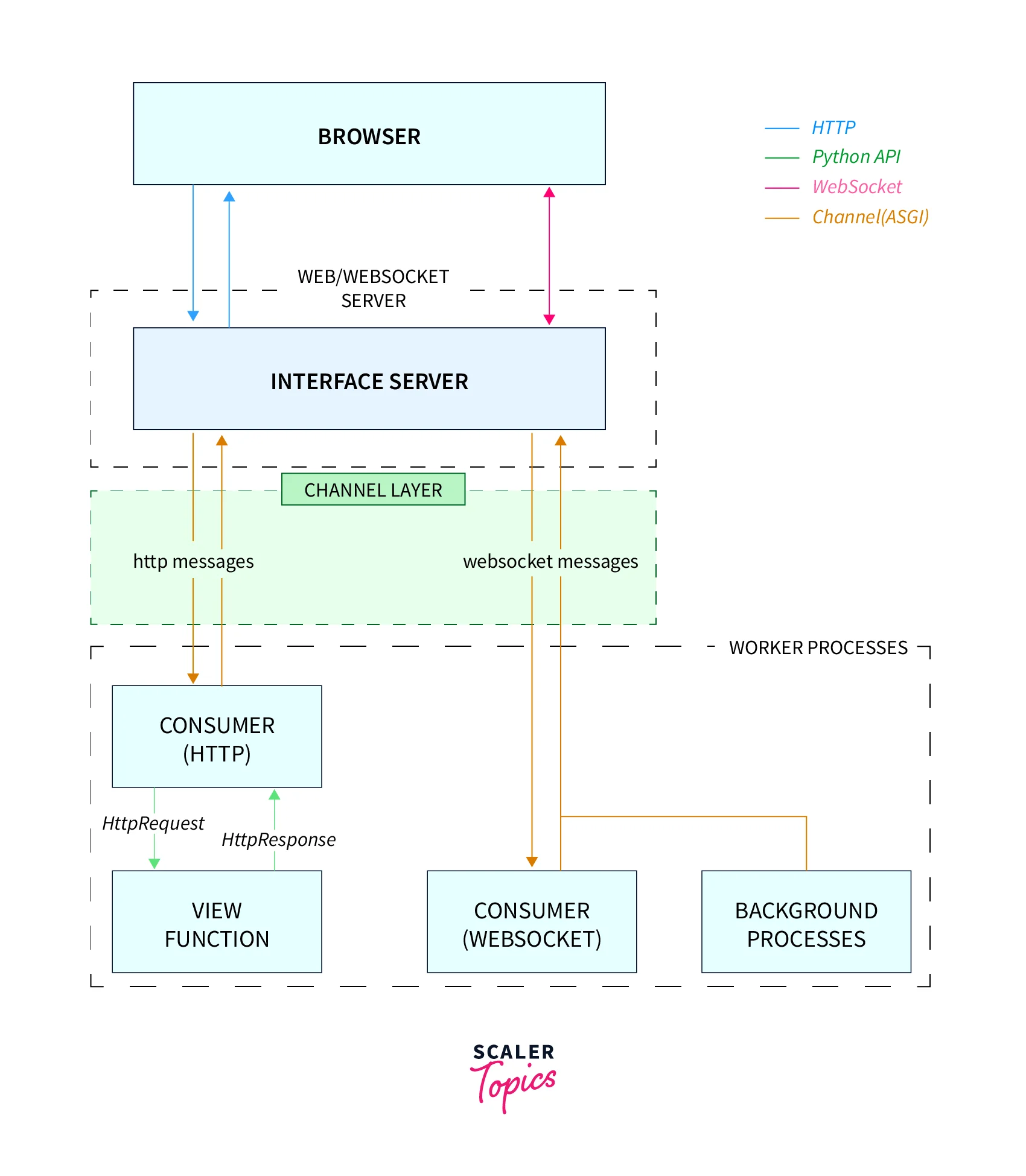 Furthermore, Django Channels include channel layers, a system that enables simple interprocess communication and divides your project into various processes. Django Channel layers are bundled with this event-driven architecture.