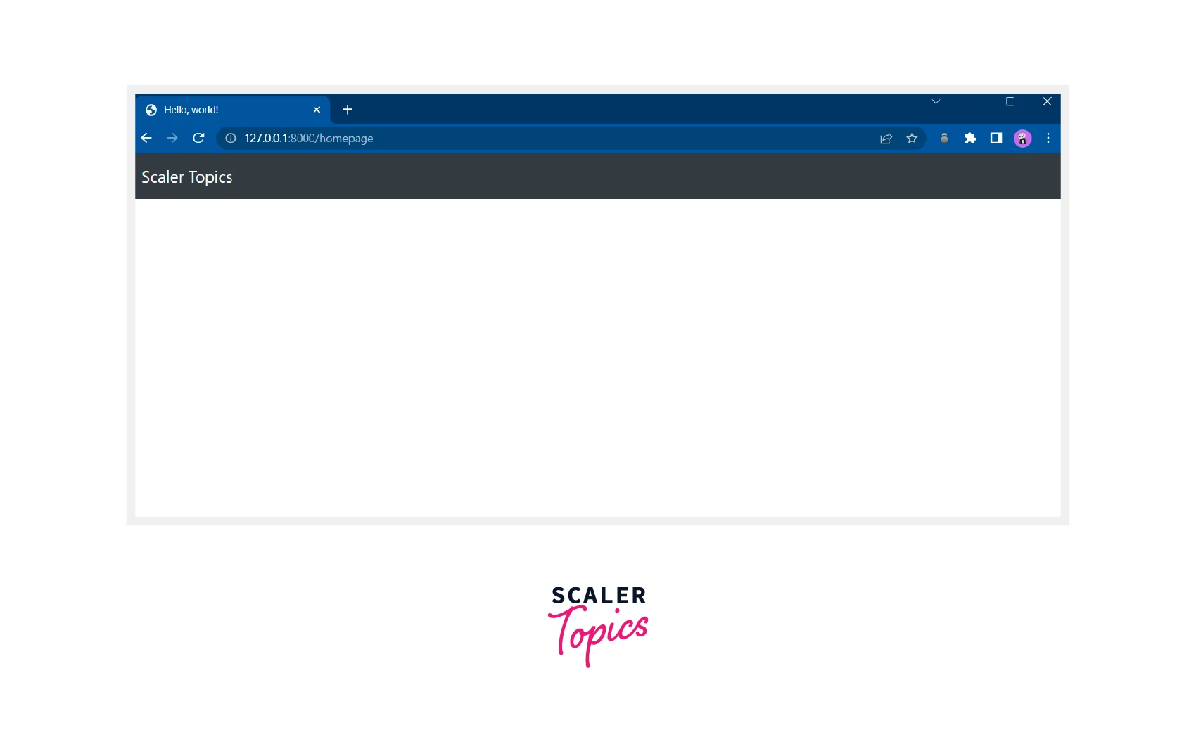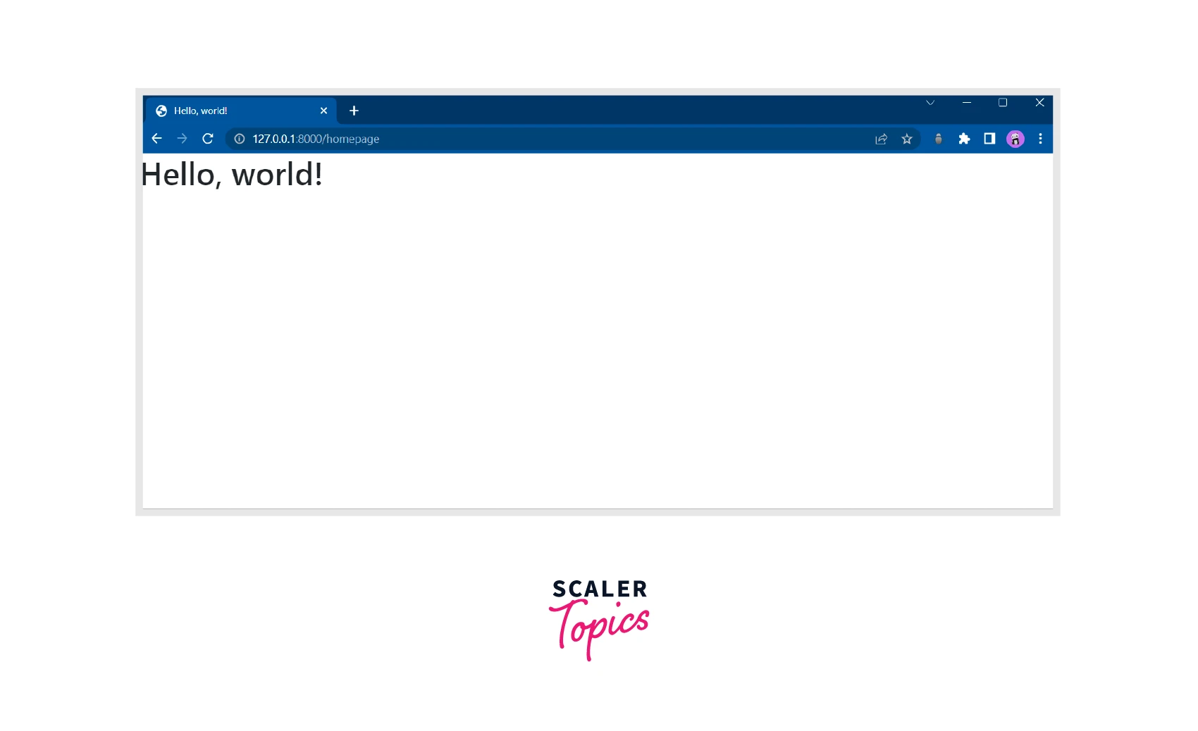 Now, refreshing the page with URL http://127.0.0.1:8000/homepage, you will find a 'Hello World' on the page.