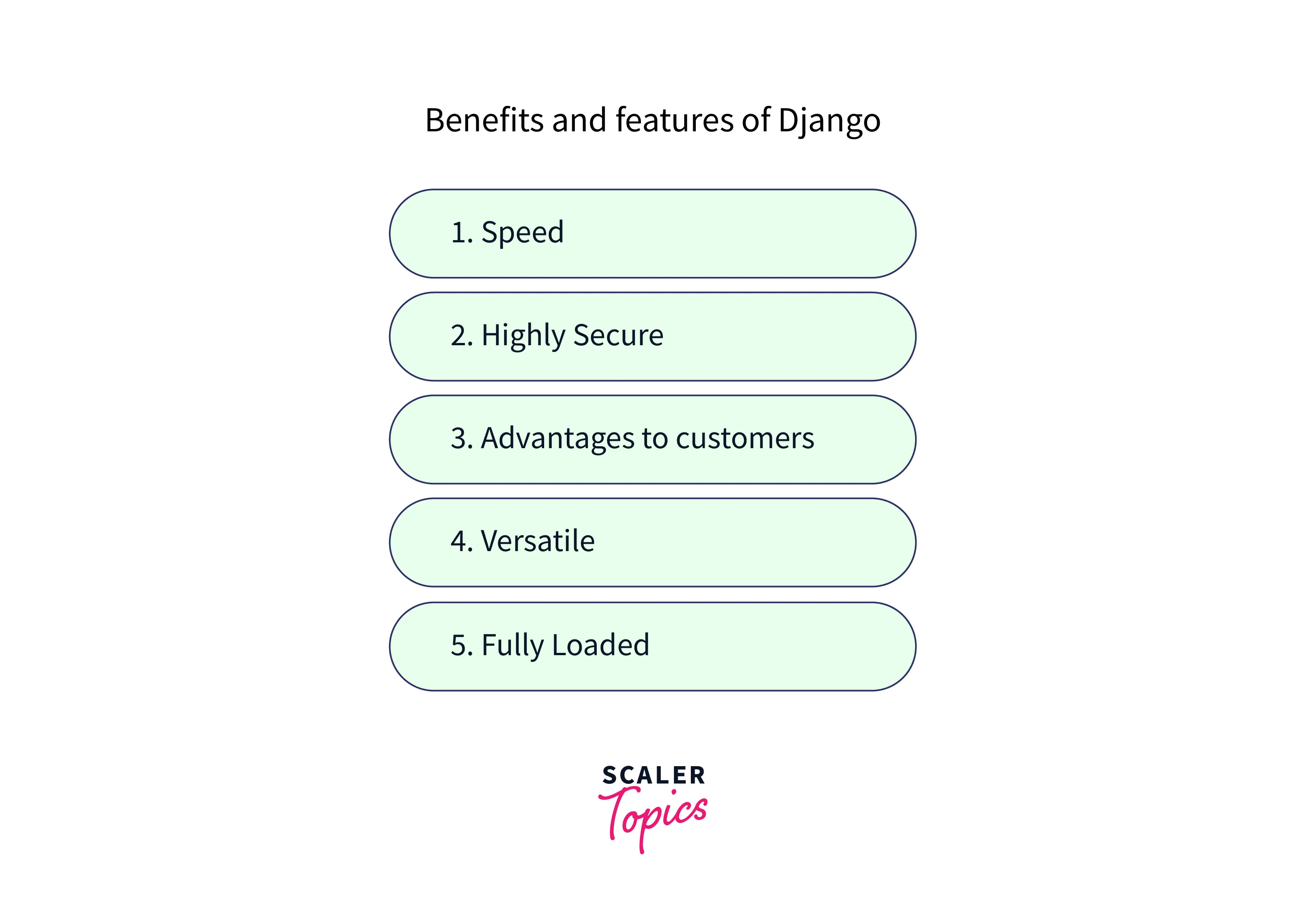 - Versatile: Any type of website can be developed using Django. For example, news sites, e-commerce sites, social networking sites, and so on.