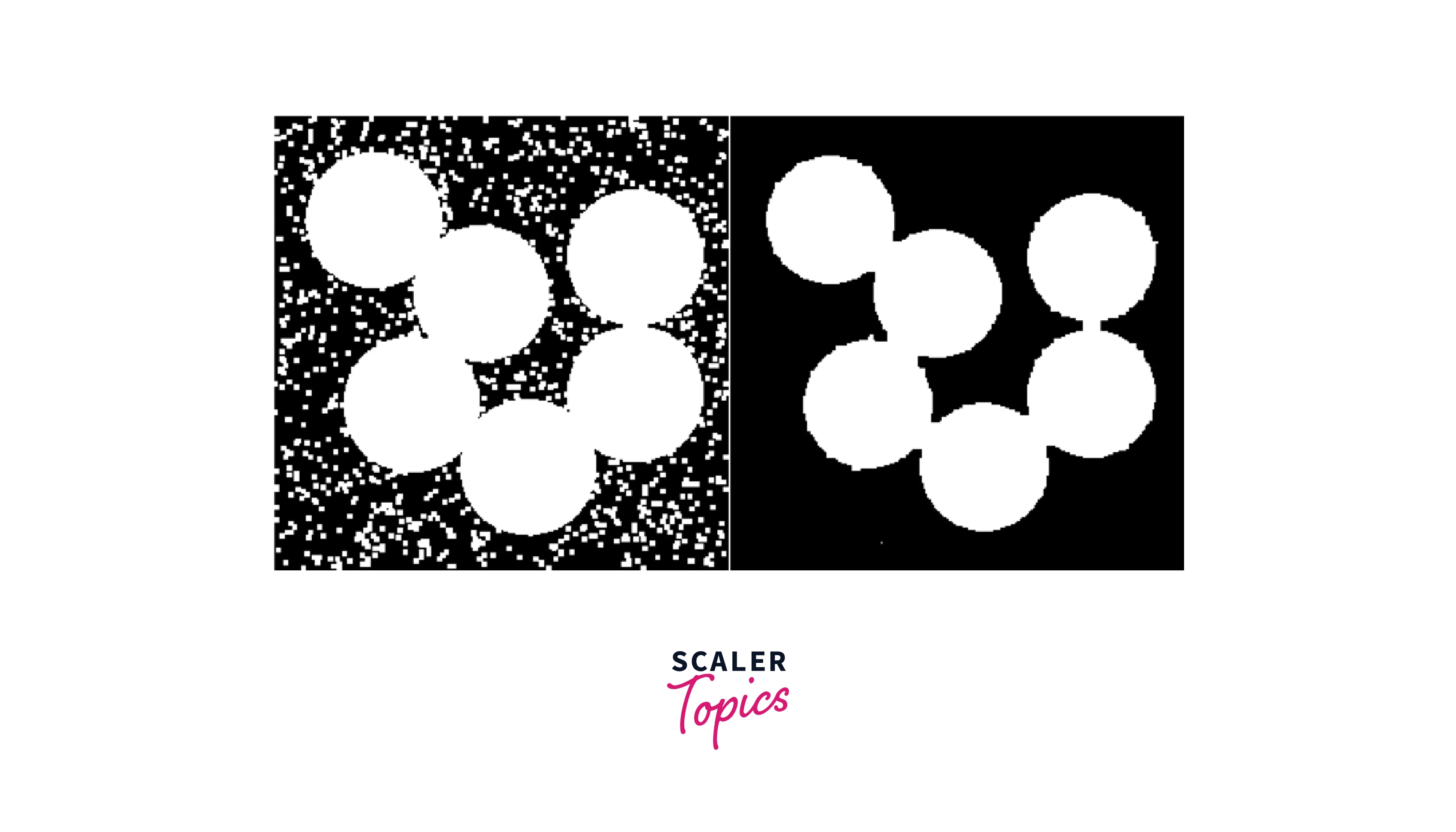 | Used to fill small gaps between objects or to merge overlapping objects. | Used to remove small objects or to separate overlapping objects. |
