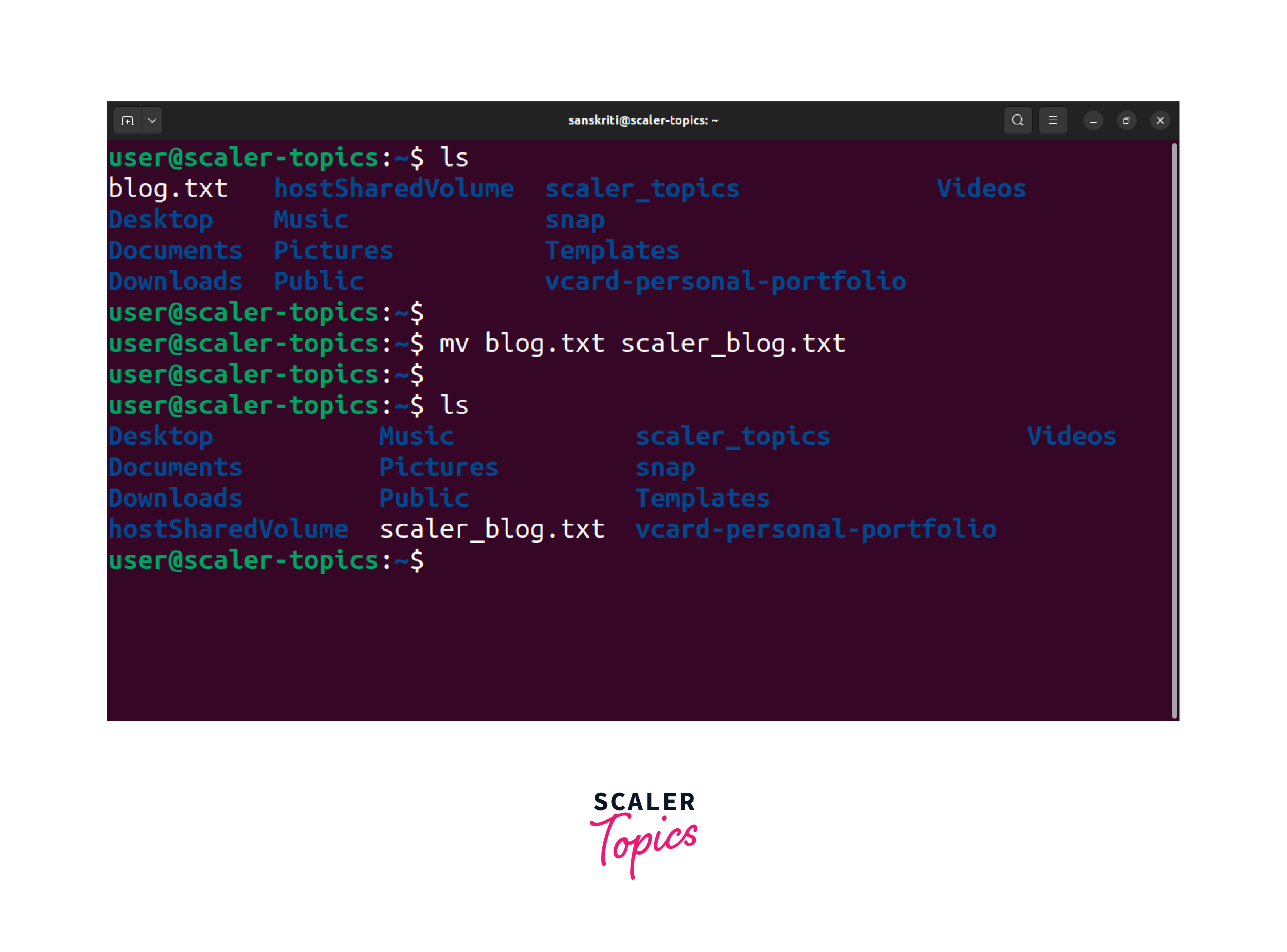 For example, to rename a file named blog.txt to scaler_blog.txt, you would execute the: