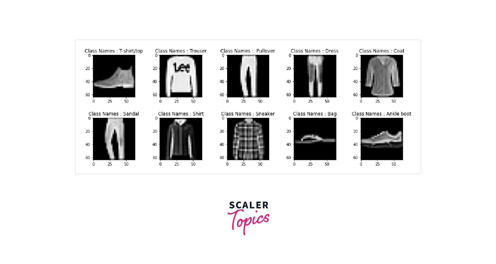 For the explanation purpose, I have used the MNIST-Fashion dataset, which consists of 60,000 color images (composed of only one channel grey channel) of clothes bags, shoes, etc. The Dataset is divided into two sections, i.e., the Train set, which consists of 50,000 images, and the Test set, which consists of 10,000 images. I have also pre-processed the Dataset by normalizing and converting the labels into categorical values and reshaping the Dataset into 64,64,1 shape because we will implement the Convolution Neural Network 2D model. First, the Dataset is loaded from the Keras MNIST-Fashion dataset, which is already divided into training and testing sets. Then, the Dataset is scaled by dividing each pixel by 255 so that the value of each pixel is between 0 and 255 and reshaped into 64*64*3. The below code snippets depict the pre-processing steps of the MNIST Fashion dataset.