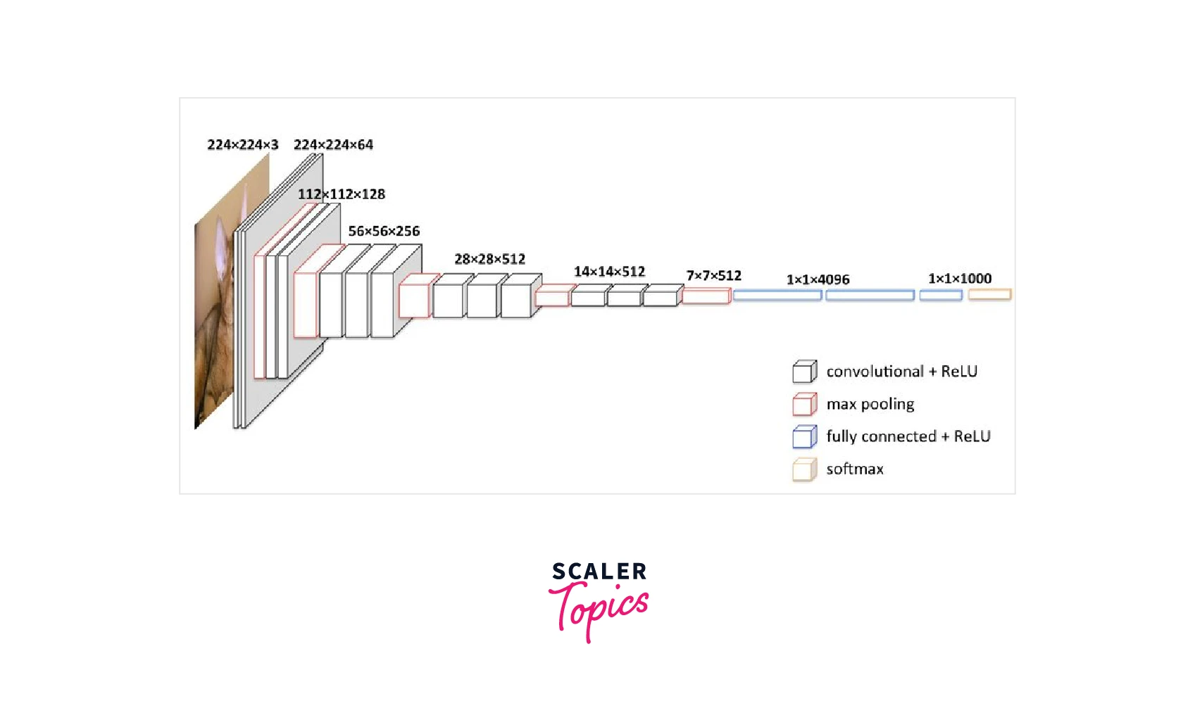 Model Architechture: As we already know, the number of neurons in the classification layer depends on the number of objects we want to classify. The pre-trained neural network is trained on the Imagenet Dataset, which consists of 1000 objects. Suppose the number of objects we want to class equals the number in the Imagenet Dataset. In that case, we can proceed as it is, but if the number of objects varies, we must implement our Dense Layer by the Dataset and optimes the weights of the Fully connected Layer only. The below image describes the VGG-16 architecture in depth: