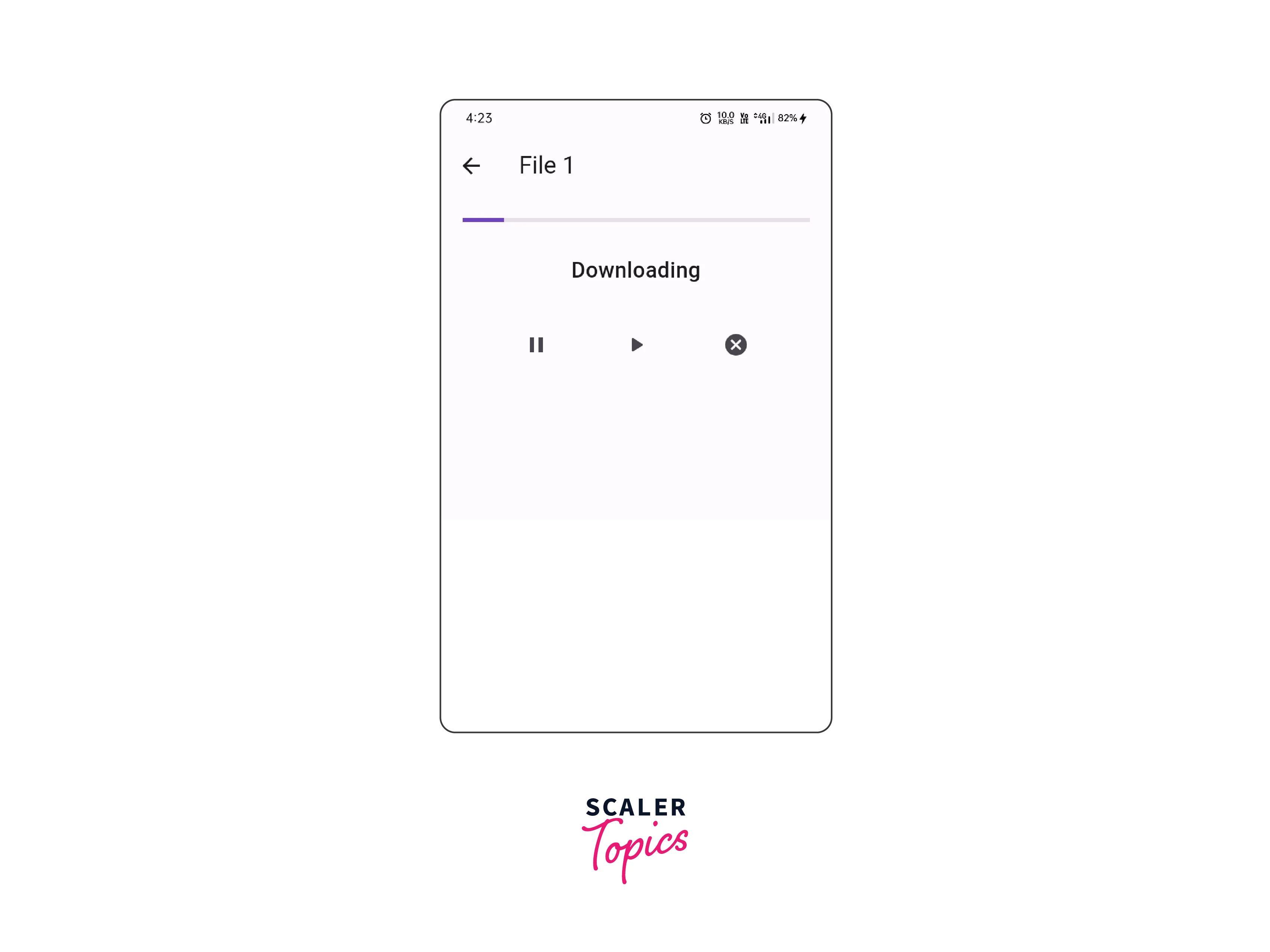 - When the user clicks on the Download button isDownloading flag will be true and the view will be changed with progress bar, download status string, and a row that contains the control button that includes pause, resume and cancel download button.