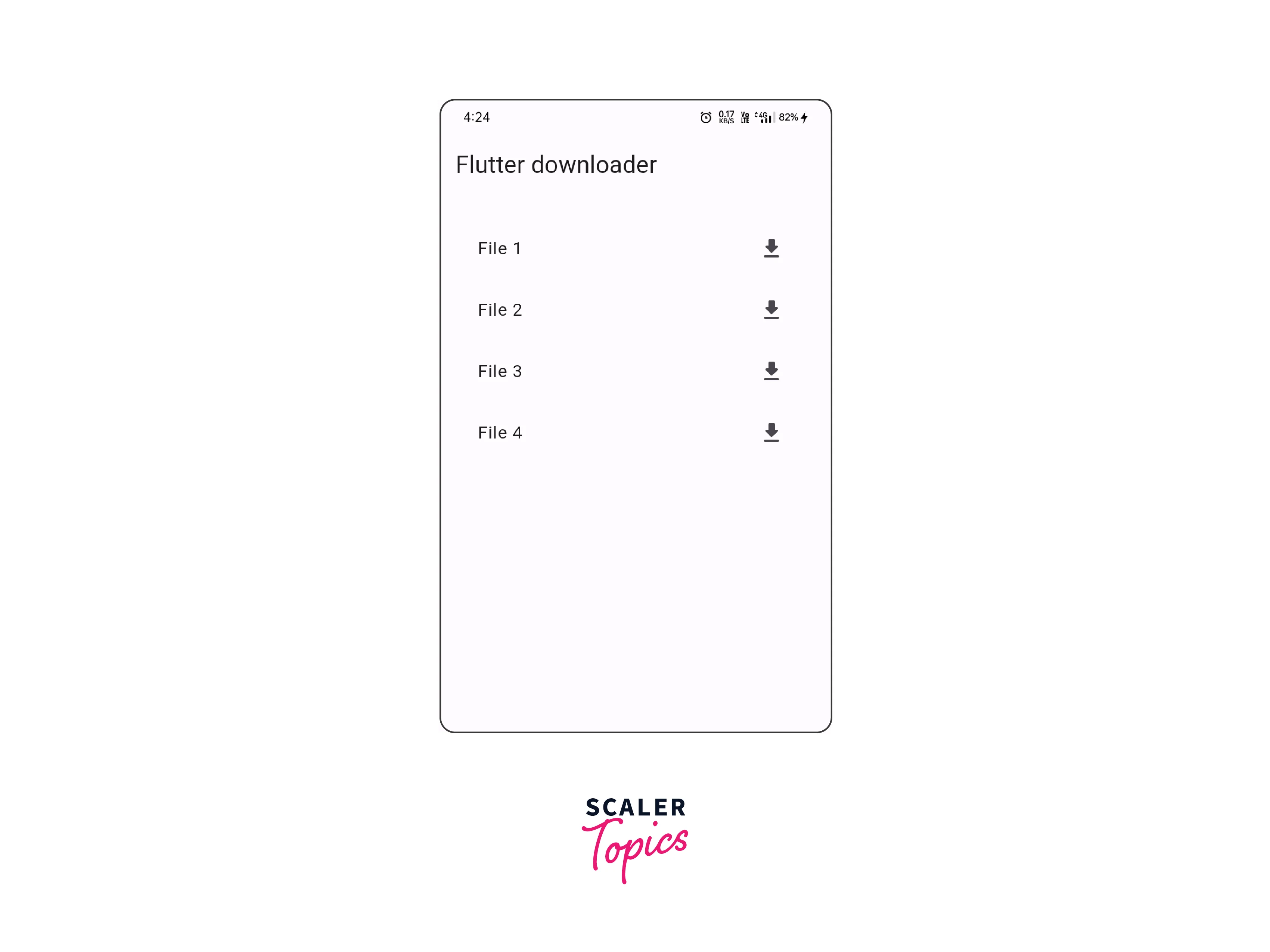 - file_listing_screen.dart is used to show the list of the urls. When the user will tap on any of the tiles, the user will be navigated to the file_download_screen.dart.