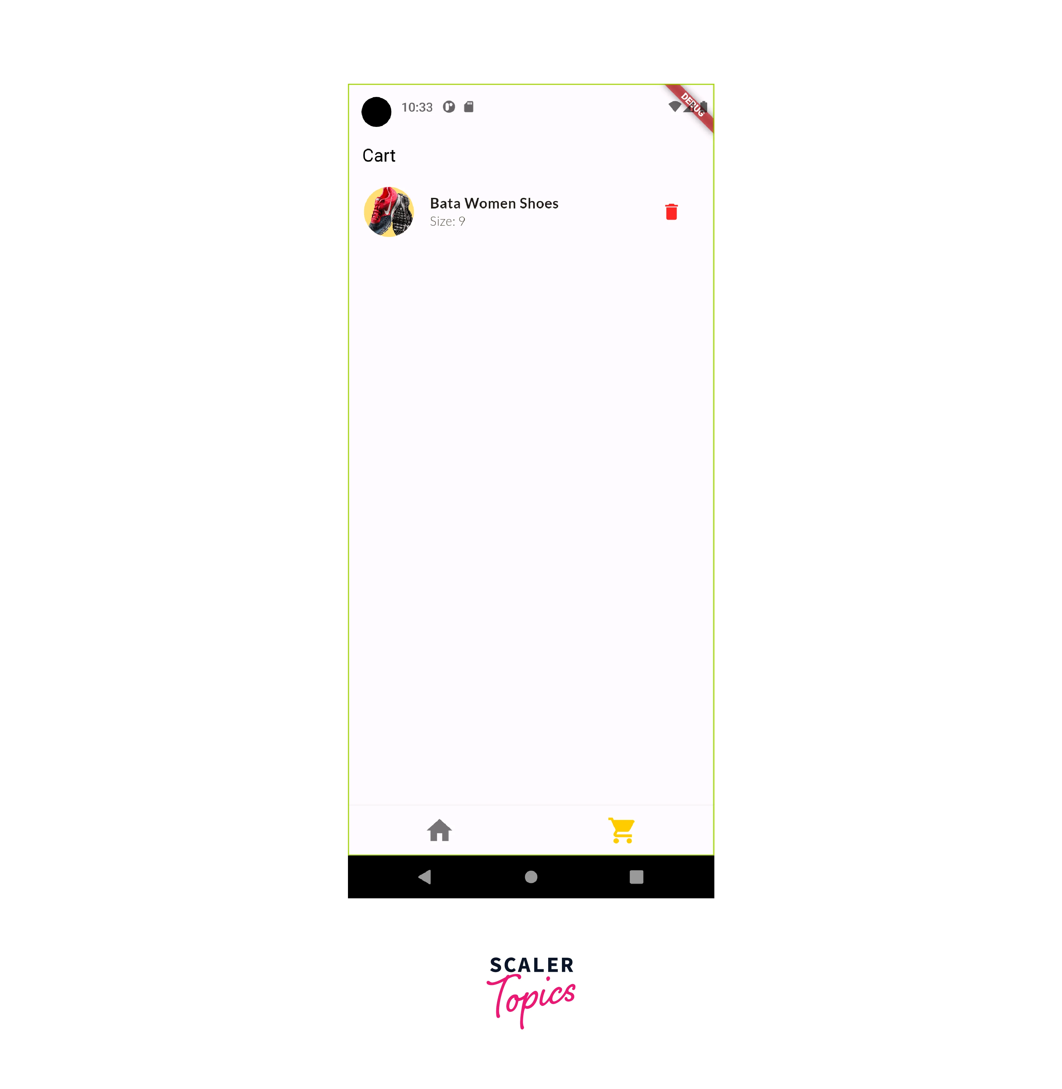 Cart Items List: The central part of the cart screen displays a list of items that the user has added to their shopping cart. Each item is usually presented as a card or list tile and includes the following information: