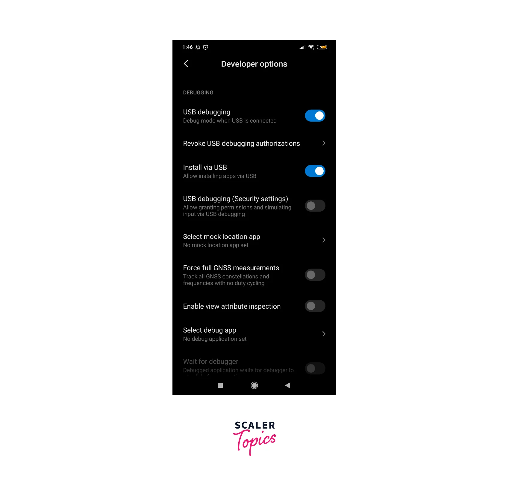 For Android: If you want to run the application on your own Android device, you must connect it via a USB cable. Then, from the device settings, enable the Developer Option and USB Debugging.