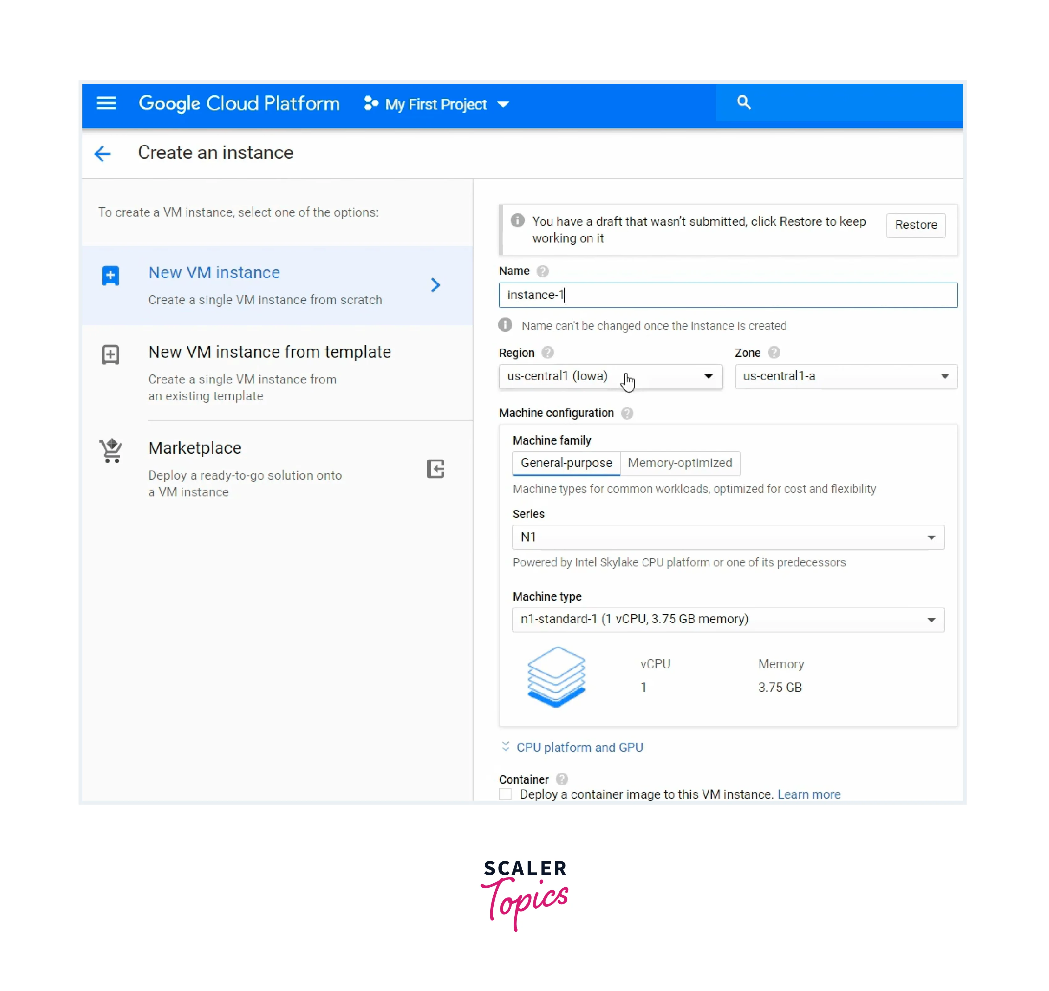 To use MongoDB on GCP, you initially require a compute instance. You should also assess the volume of data you have, the questions you have, and the service level agreements you have with your clients. Ideally, your chosen instance would be equipped with enough RAM to handle your workload and fast enough persistent storage. Databases function effectively in general with quick persistent storage. Start by creating a new instance.