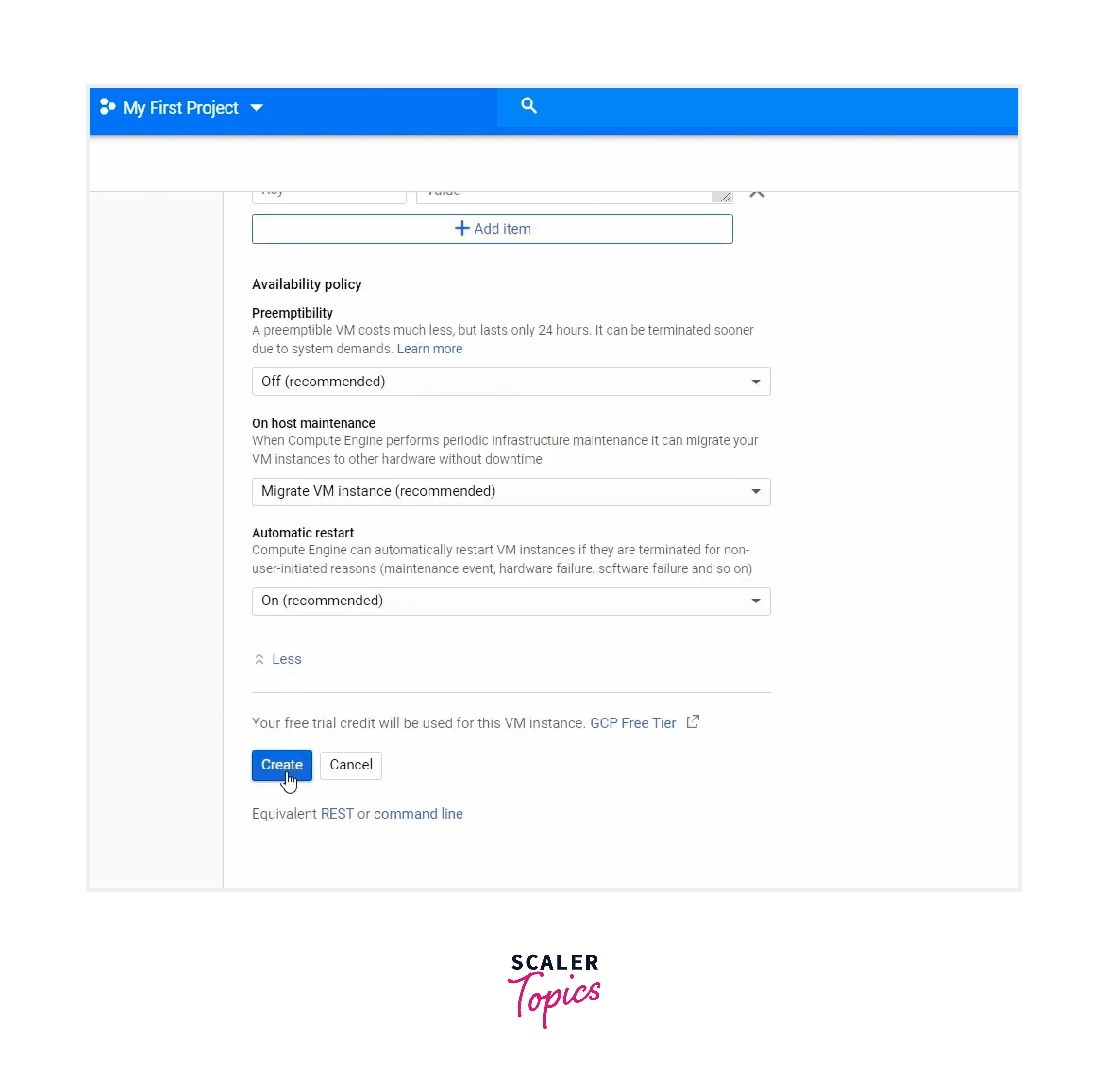 Step 2: Enter the information for your instance type and click Create. If it takes a few seconds, do not be concerned.