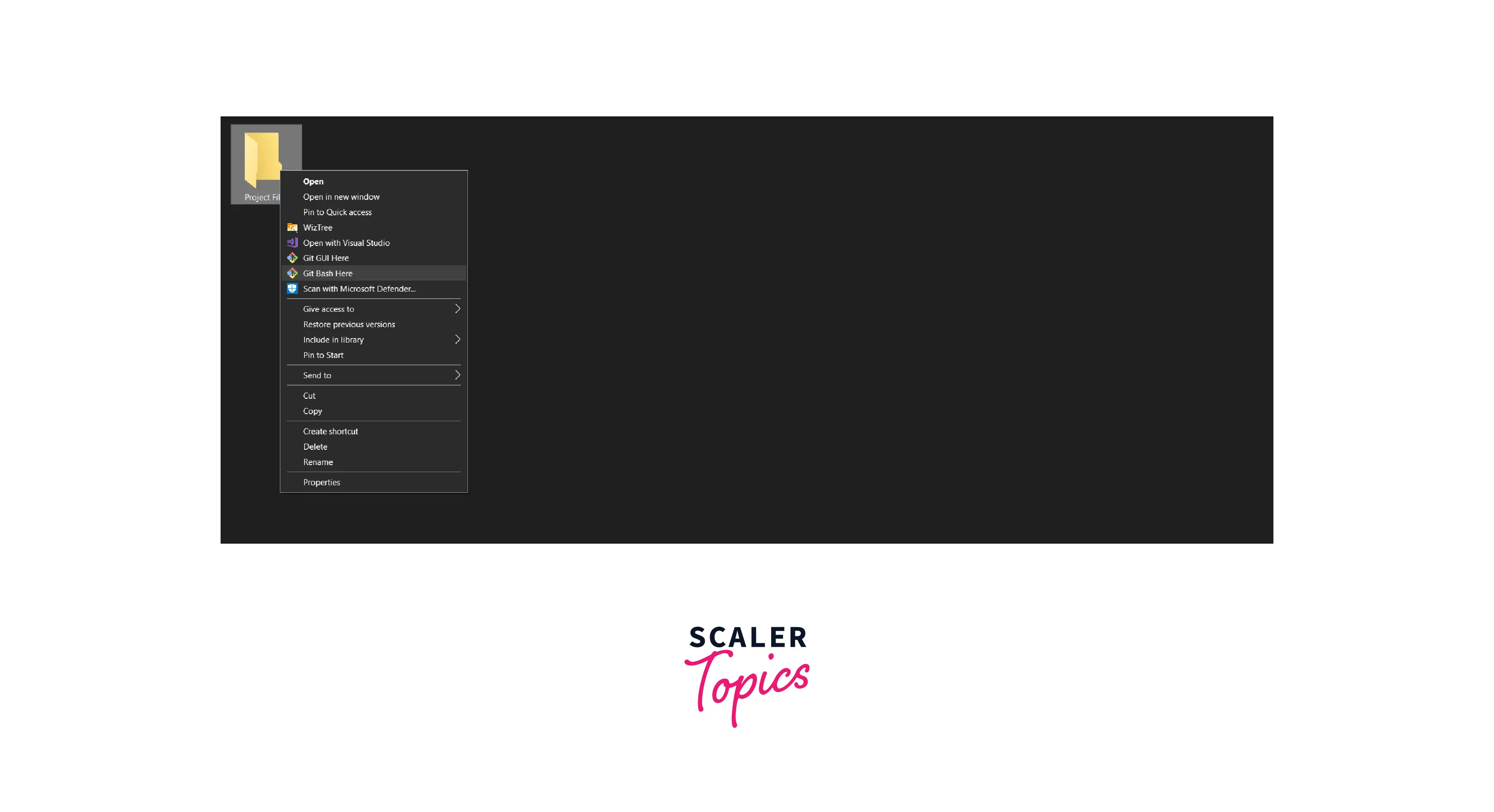 To open a particular file or folder in Git Bash, right-click on the file and select the Git Bash option as shown below: