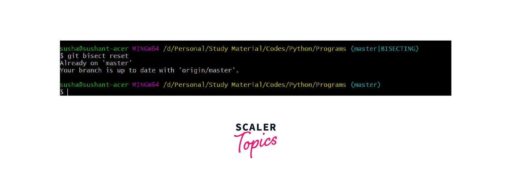 - git bisect reset: As the name suggests, this command is used to exit the bisect mode. Hence, when we execute this command, the Git is returned to its original mode exiting the bisect mode.
