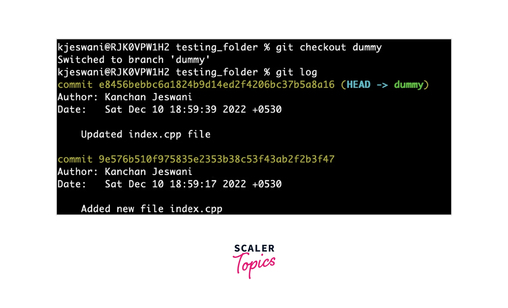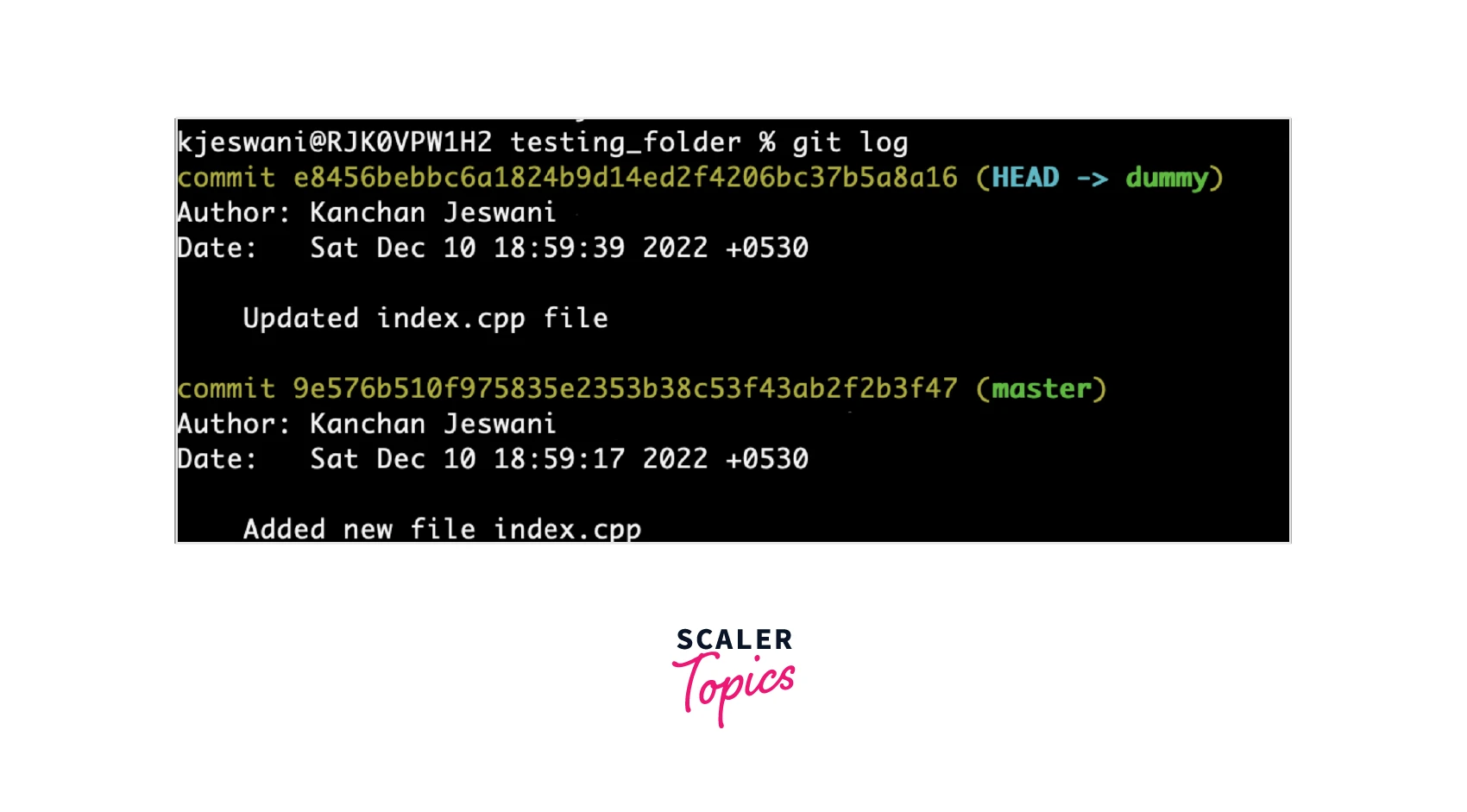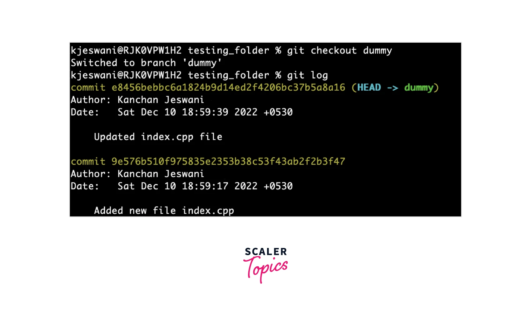 We have used the reset command with the number 2, as we have done our task of moving those commits to our required dummy branch and now we can remove those two commits.