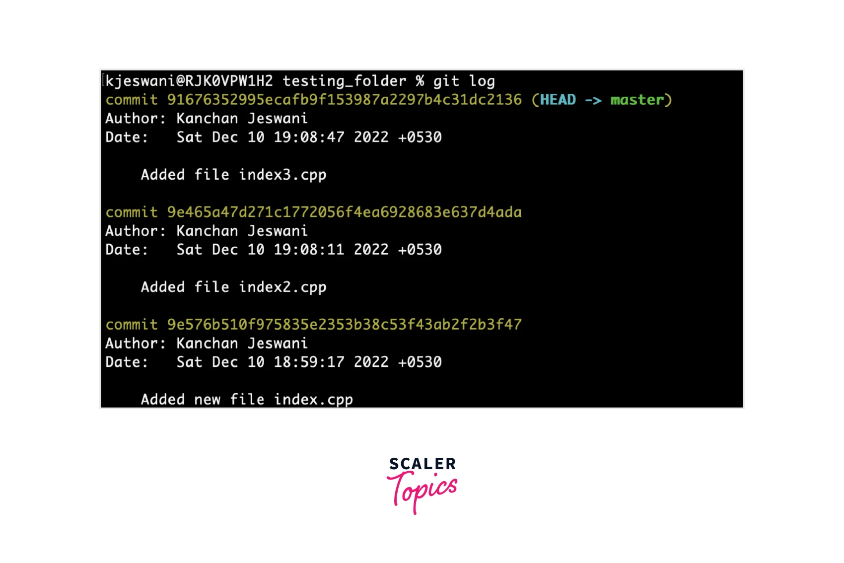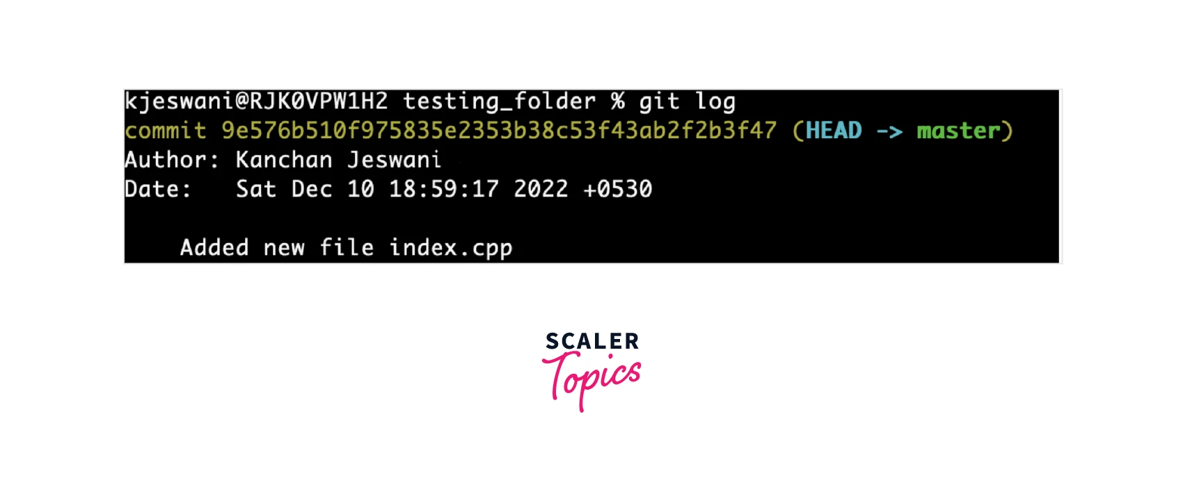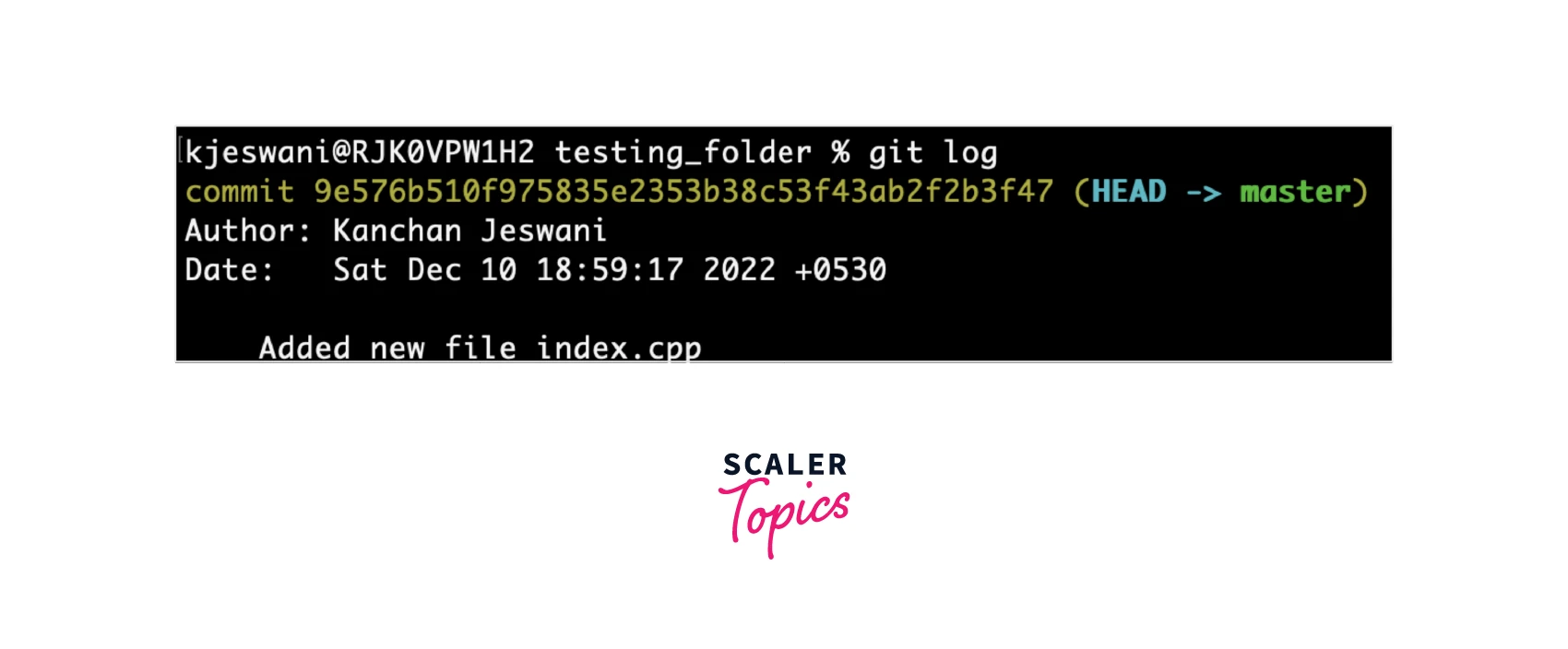 where commit_id is a unique id associated with each commit and is automatically generated at the commit time. A commit ID is an encrypted number generated using the Secure Hash Algorithm (also known as SHA). You can use the Git log command to view the history of commits for a particular repository. Let's see an example of how we can find the commit id using the git log command: