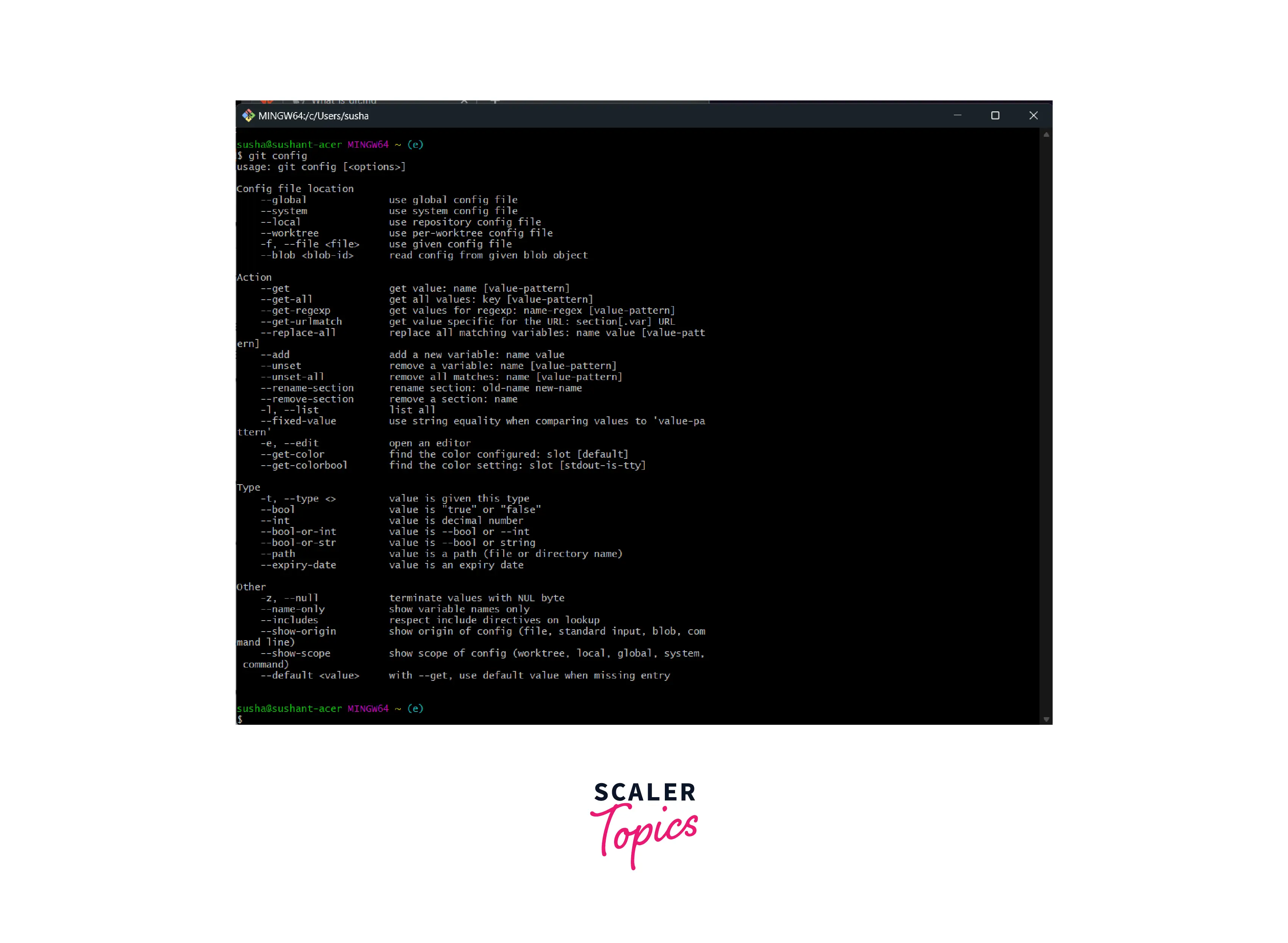 When we talk about the system-level execution of commands and settings, we mean the configuration related to all the working git repositories of the Git application as well as the configuration related to the operating system user on which we have installed the Git application.