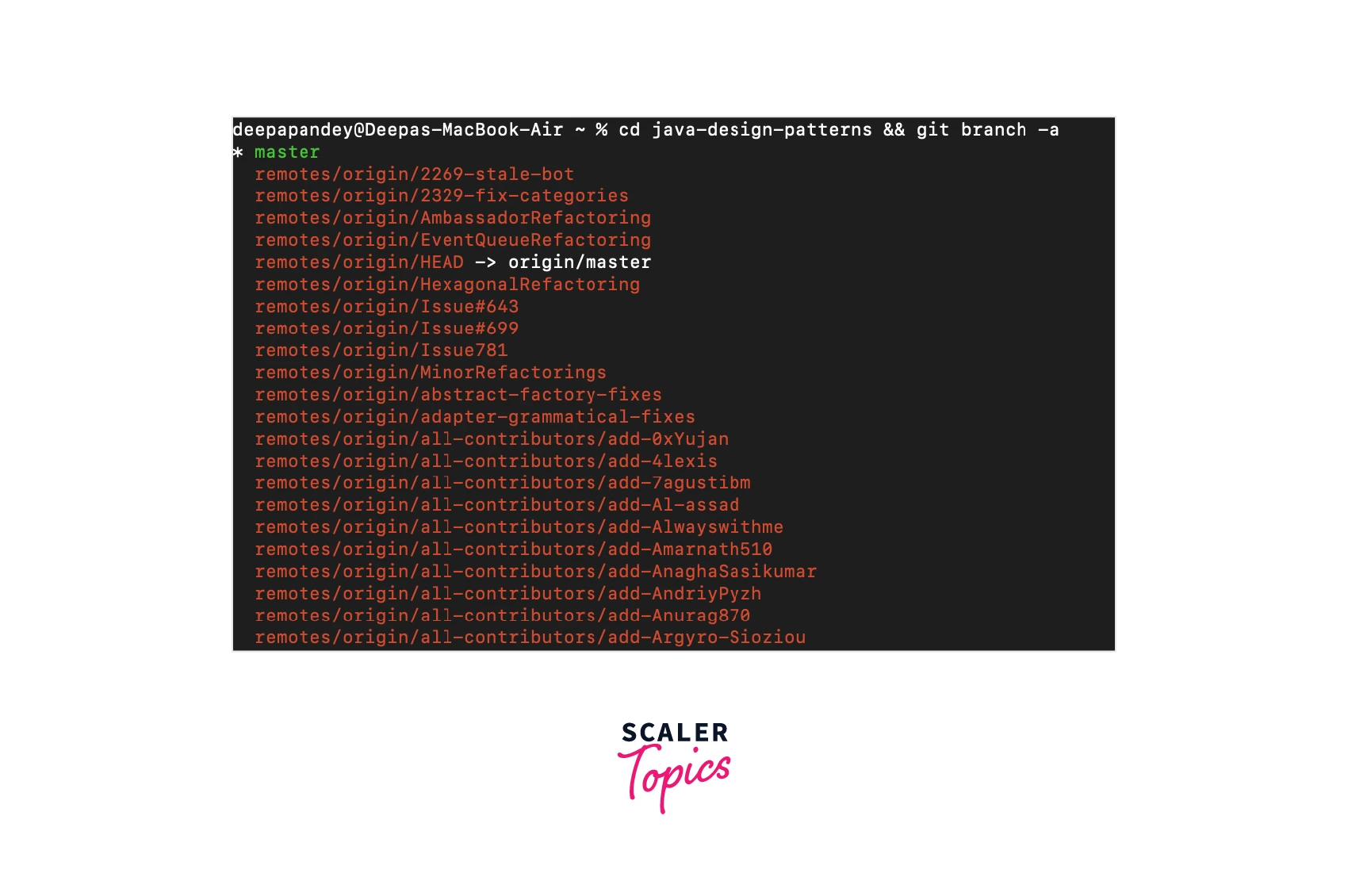 Now let us look at an example, where we will be cloning multiple branches of the java-design-patterns repository. The --no-single-branch flag will be used in the example that follows. If the --no-single-branch option is included, depth is applied for every branch rather than just the one that the shallow clone expects by default. Consequently, we will shallow clone a number of branches from the Django source.