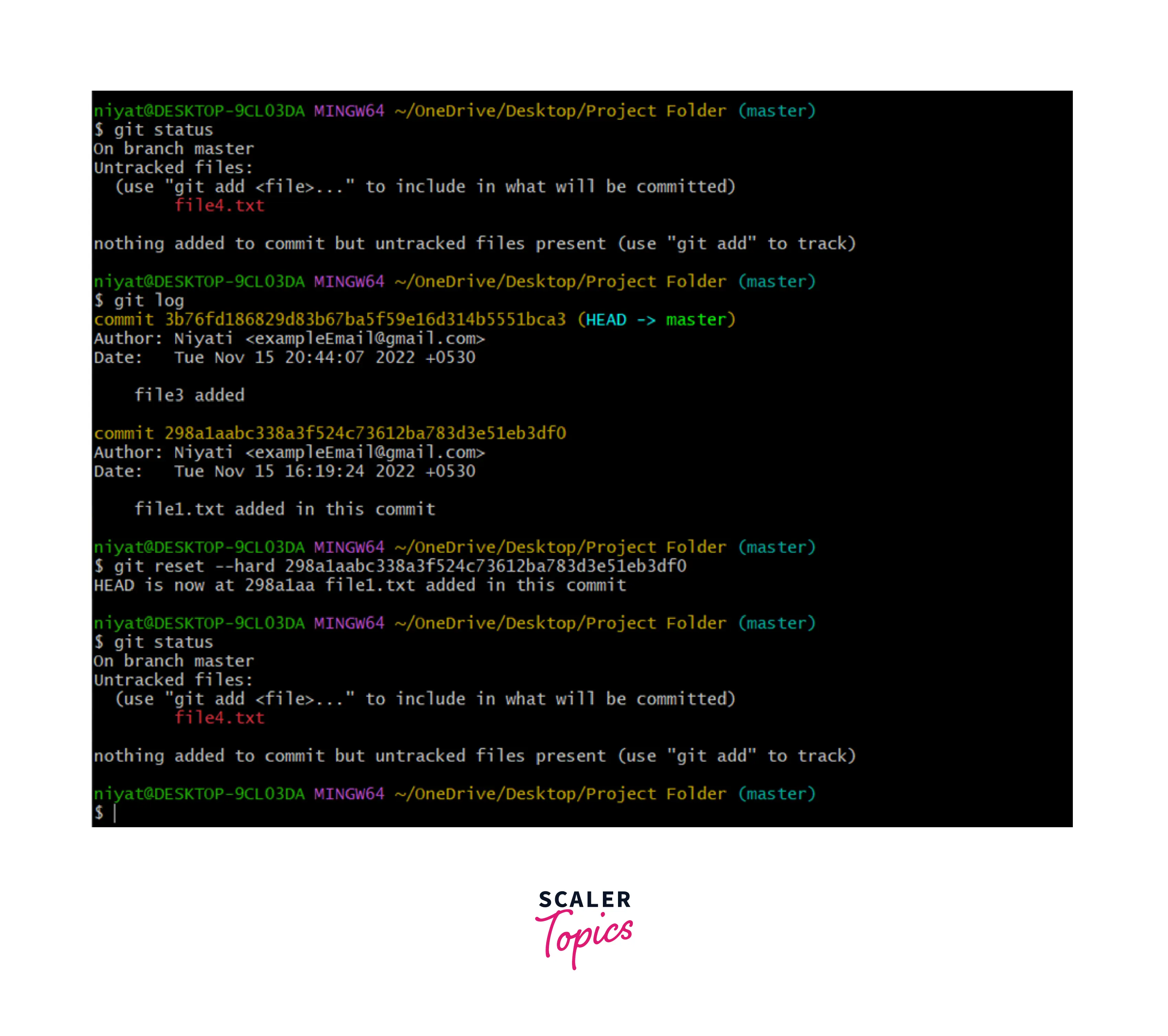 As the above example depicts, untracked files are not affected by the git reset command.