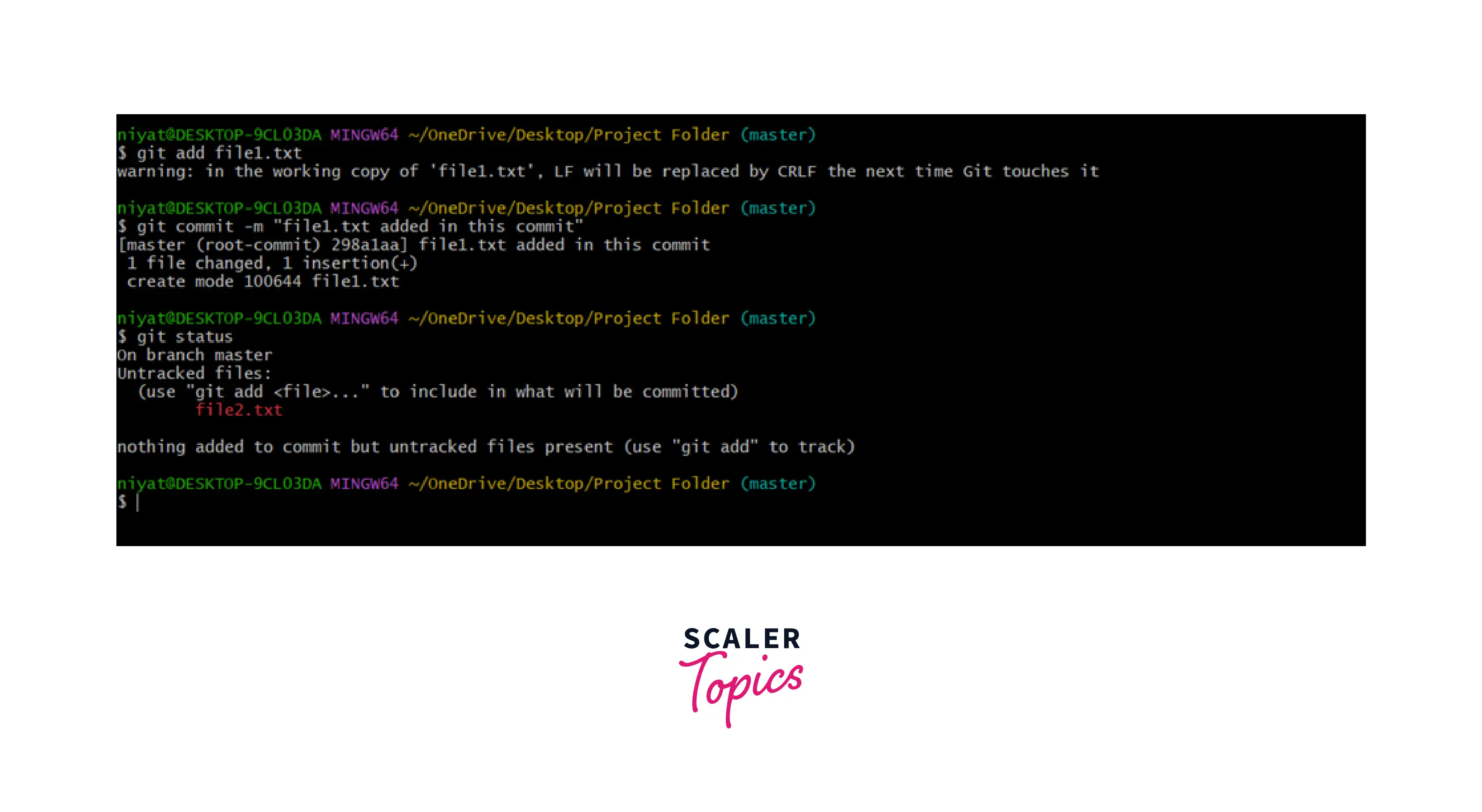 Now, as we see in the status that file1.txt is no more in the untracked files.