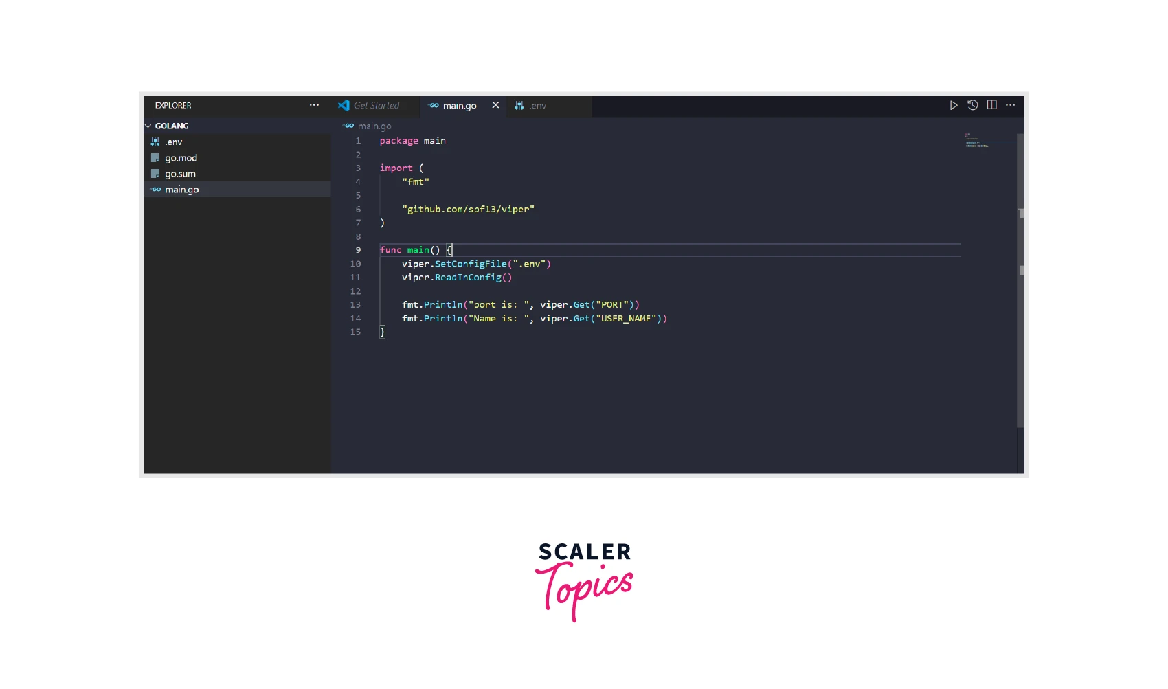 • Read the environment values with viper.Get("KEY"), where KEY is the variable name. For example, viper.Get("PORT") will read the PORT from the .env file.