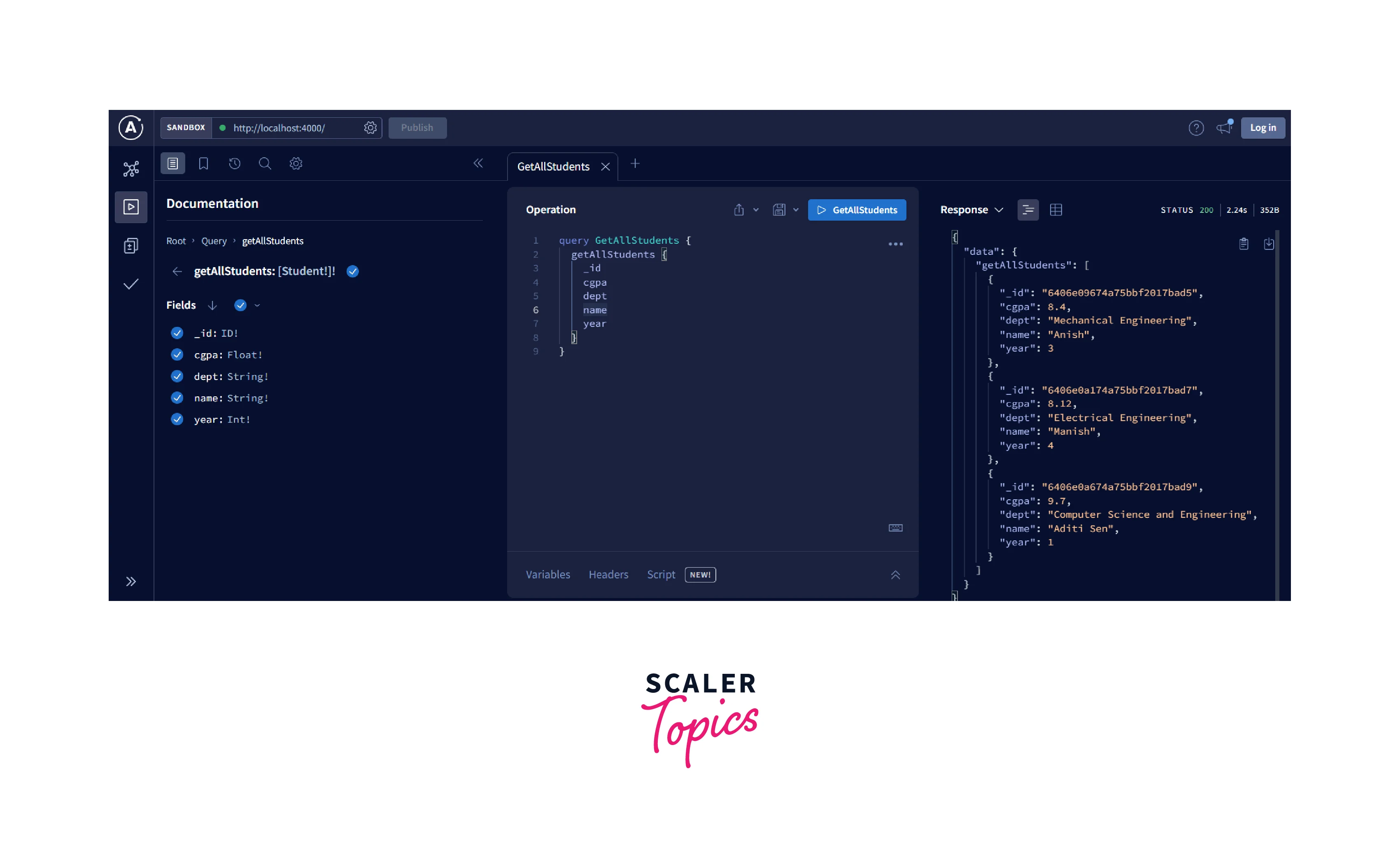 Thus an instance of Apollo Server is created and launched on port 4000.
