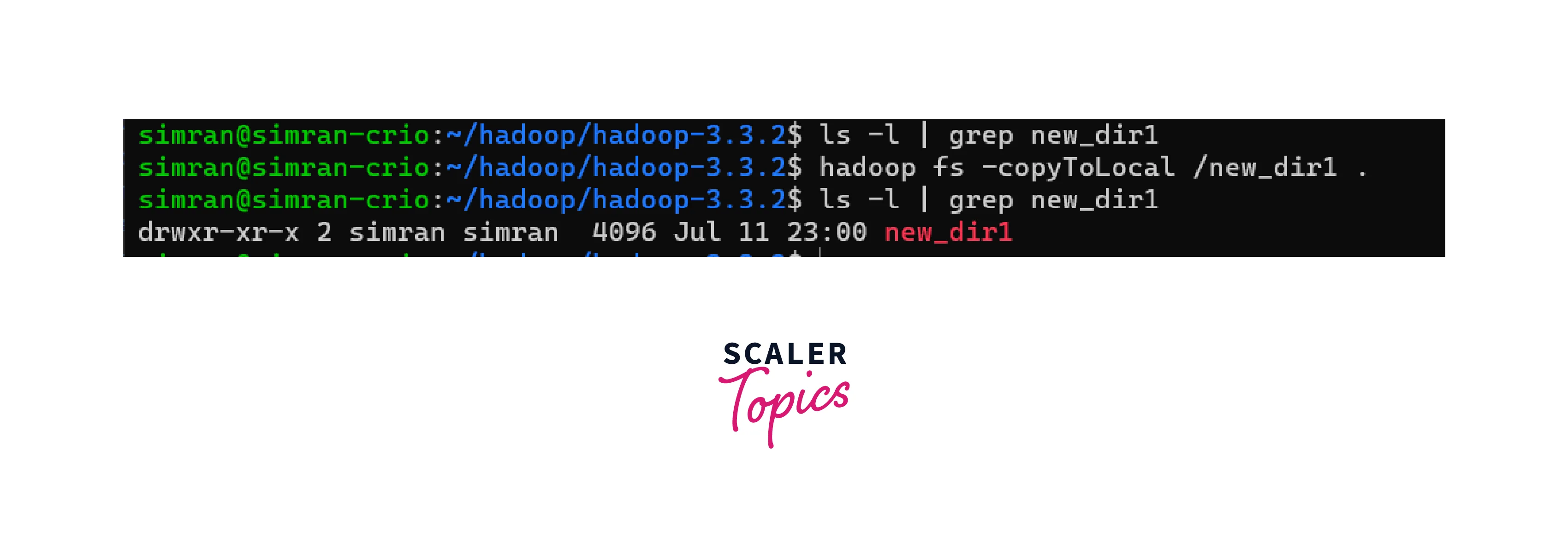 - Example: hadoop fs -copyToLocal /new_dir1 .