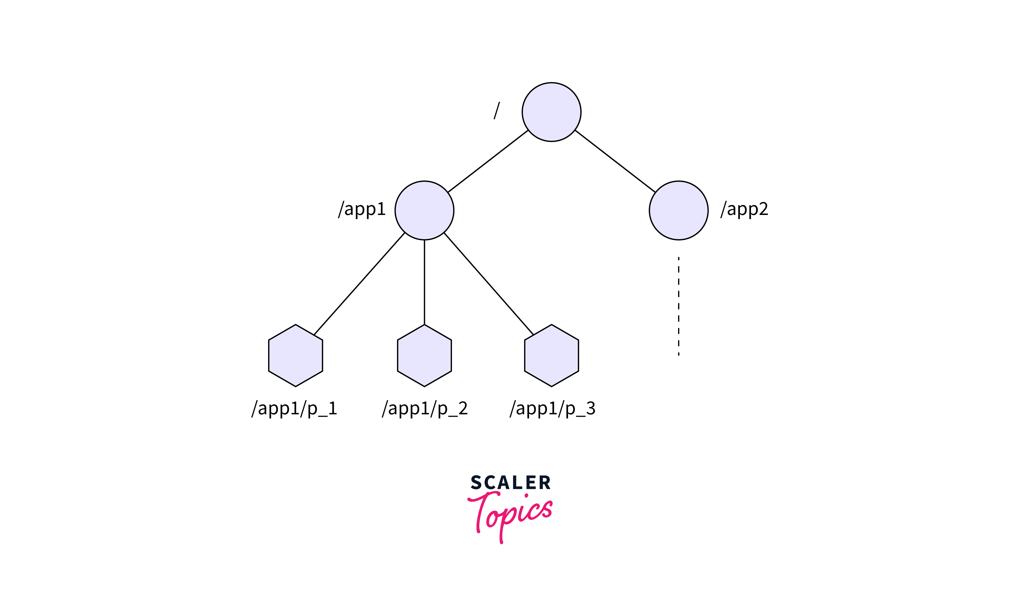 The ZooKeeper tree is organized hierarchically where each node is known as a znode, can store data and be assigned a path. This route adheres to Unix file system rules, with slashes (/) separating node names.