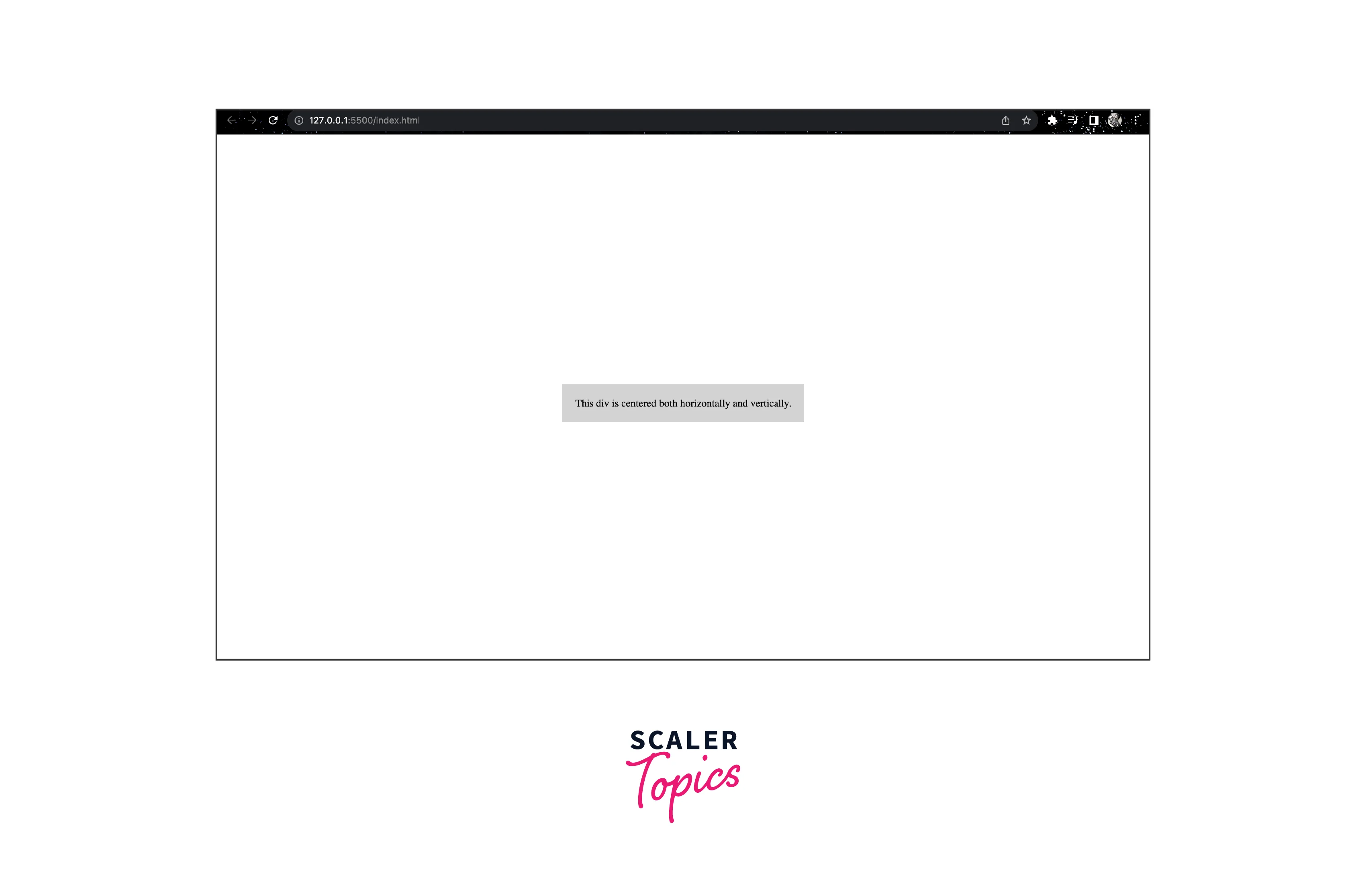 - The content within the inner <div> is the text "This div is centered both horizontally and vertically."