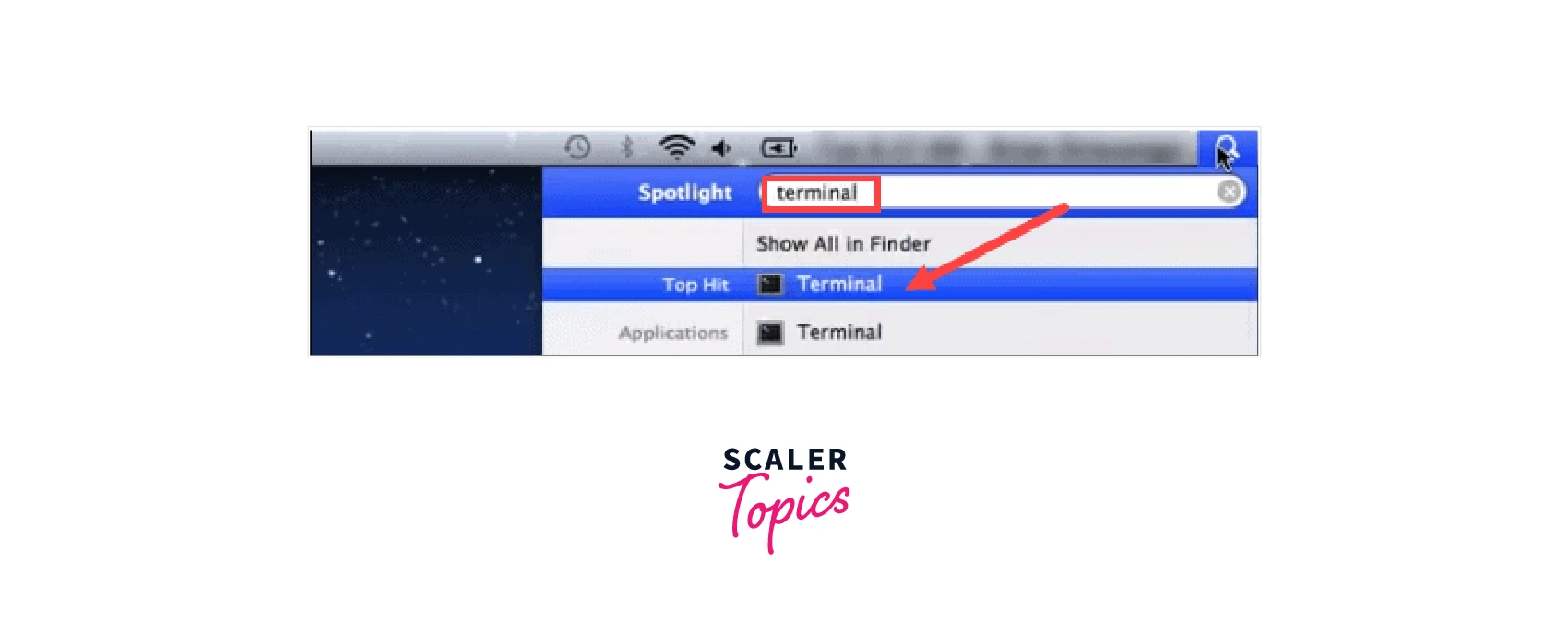 - Click the Spotlight Search button in the top-right of the screen and search the terminal.