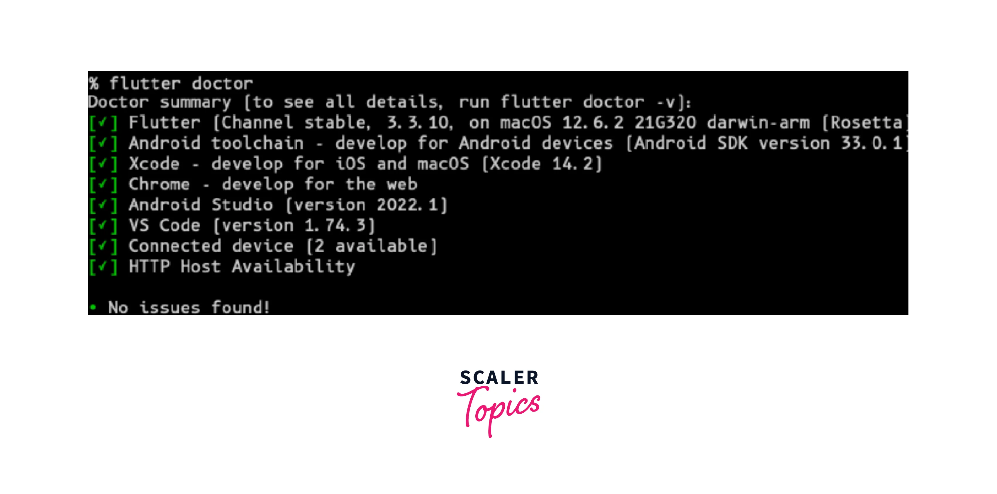 Flutter provides a tool, flutter doctor, to ensure that all Flutter development requirements are satisfied.