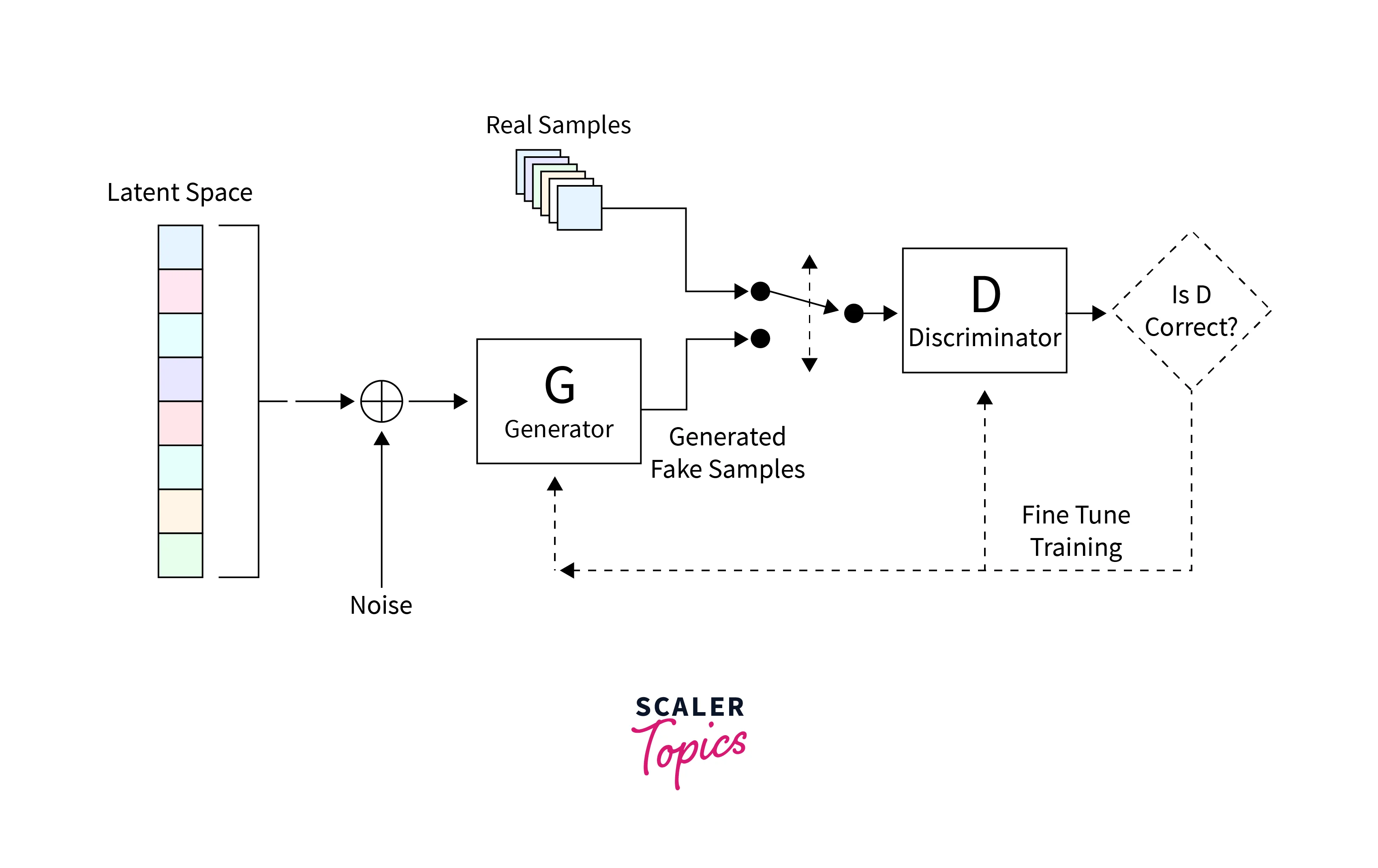 The training paradigm for GANs is called Adversarial Training and relies on an interplay between the Generator and the Discriminator.