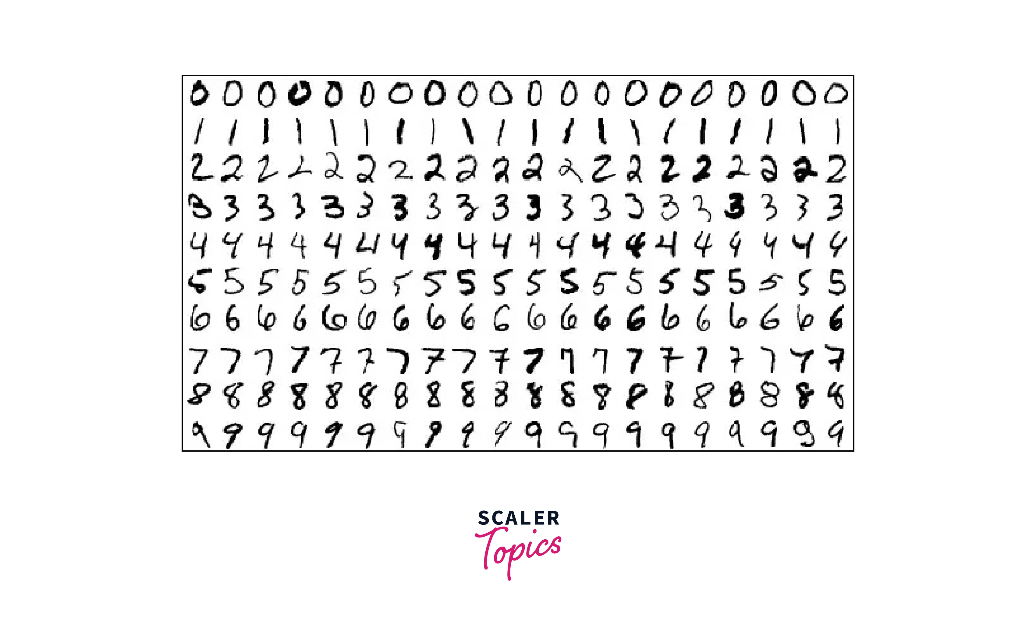 A dataset of handwritten digits is almost ubiquitous in deep learning. The Dataset we use in this article is the Modified National Institute of Standards and Technology database or MNIST. A sample of this Dataset is shown below.