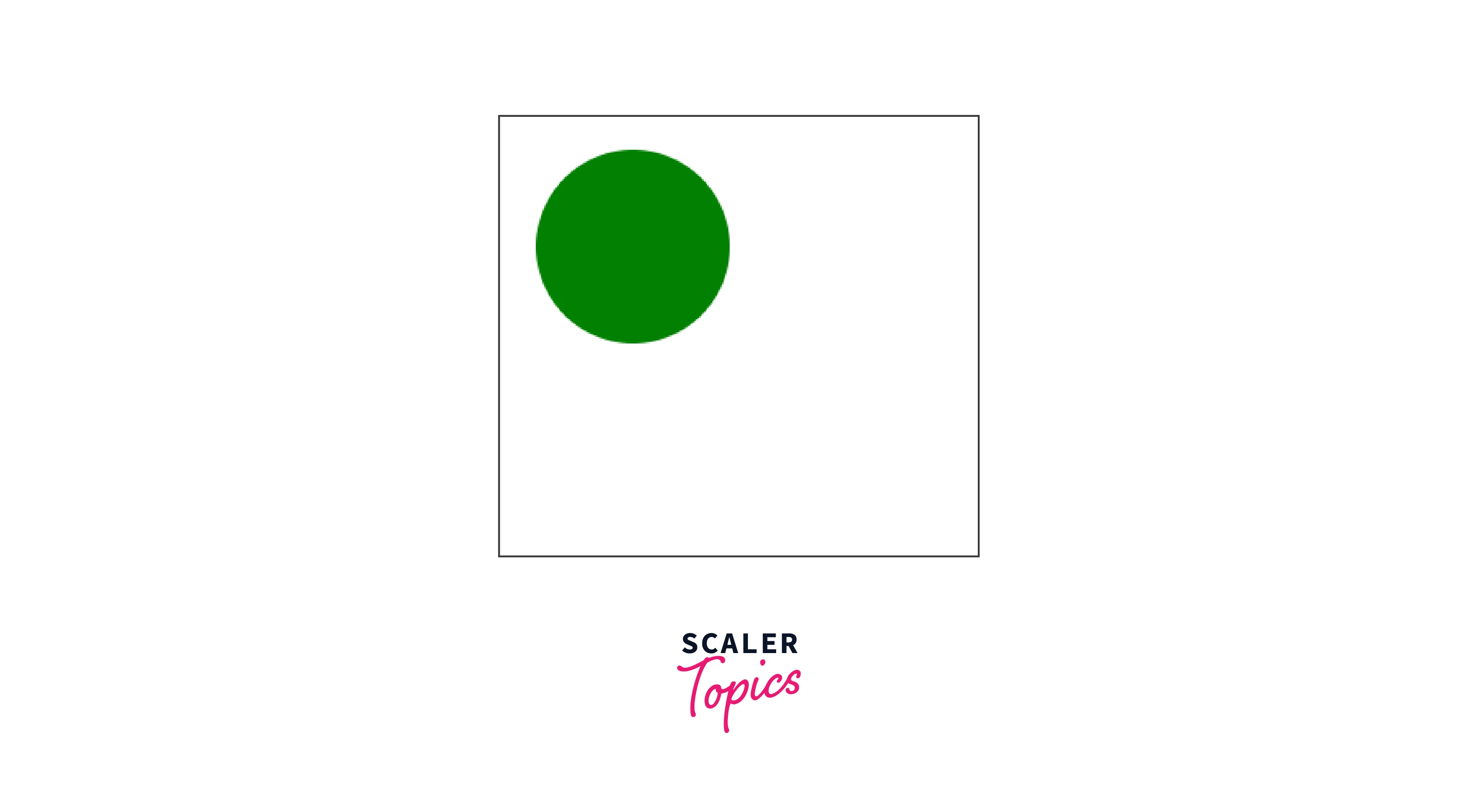 Here we have a rectangle drawn using a <rect> element, and inside it, we have a circle. A circle is drawn on the screen using the <circle> element.