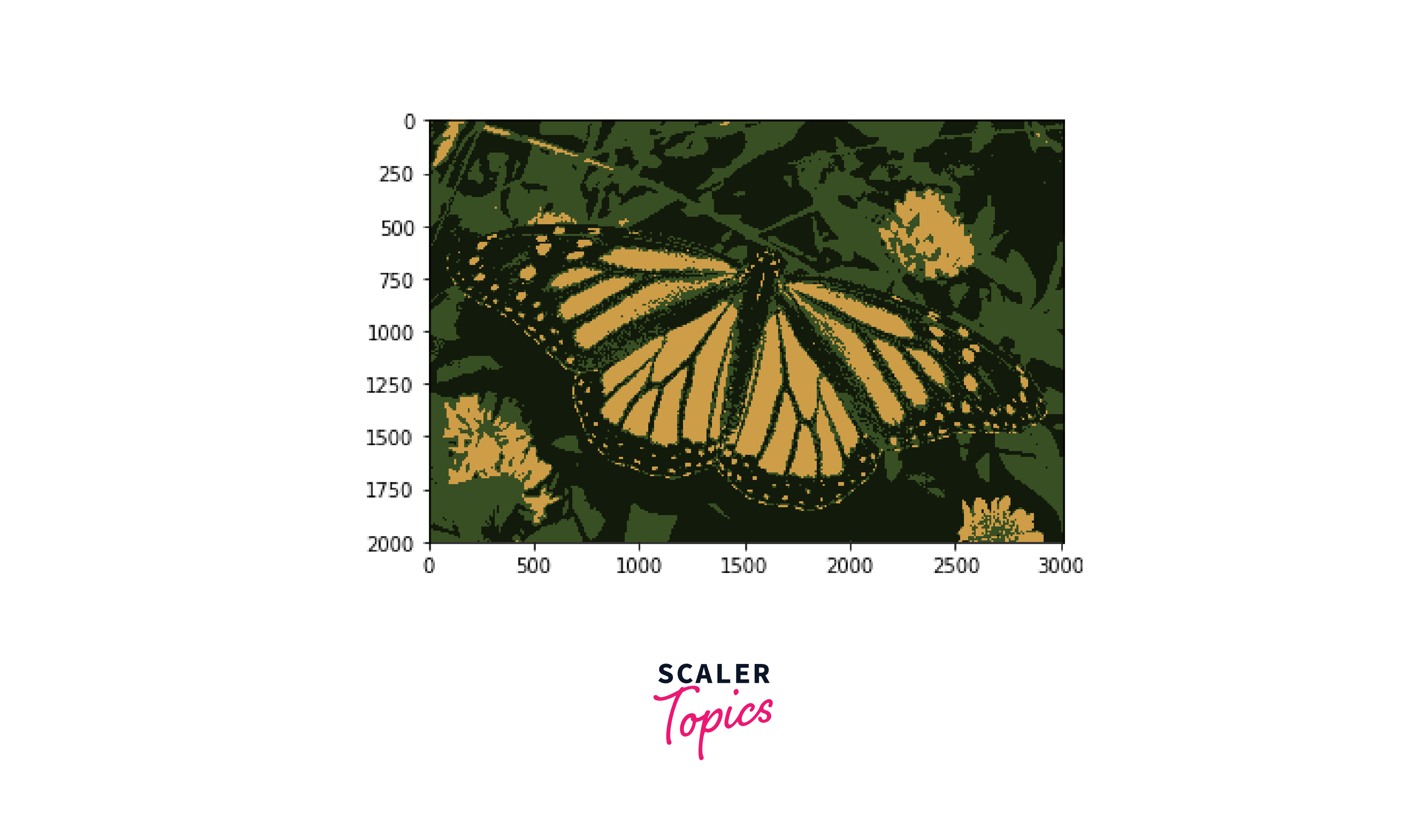 We reshape the labels assigned to each pixel and the centre values of each cluster to the original image shape using the reshape() function and the img.shape attribute of the input image. We also convert the centre values to the uint8 data type using the np.uint8() function of NumPy. We assign the cluster centre values to the corresponding pixel labels to obtain a segmented image.