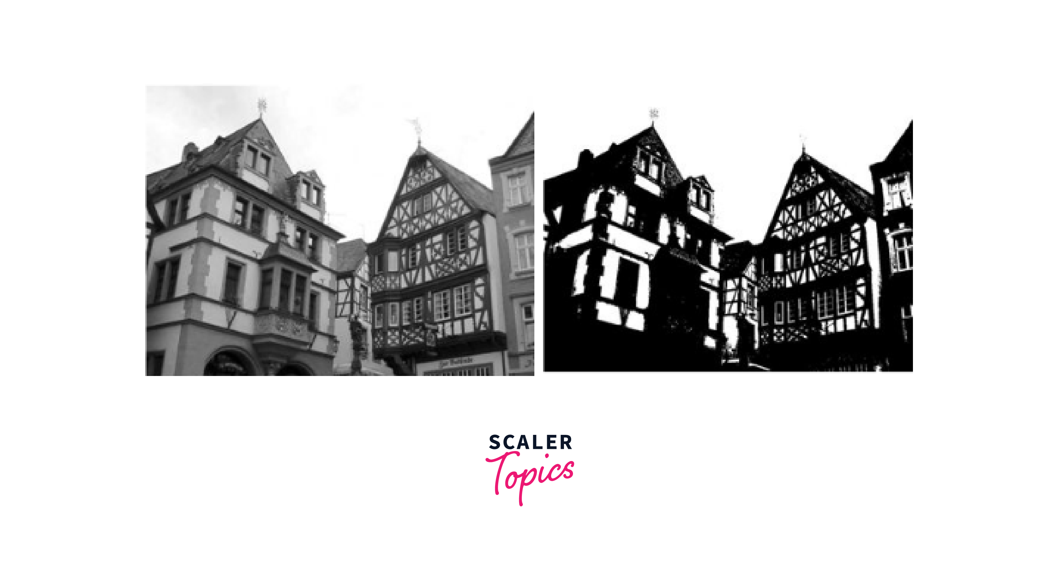 In this code, we first convert the image to grayscale using the cv2.cvtColor() function. Then, we apply thresholding using the cv2.threshold() function, where grey is the input image, 127 is the threshold value, 255 is the maximum pixel value, and cv2.THRESH_BINARY is the thresholding type. Finally, we display the thresholded image using the cv2.imshow() function.