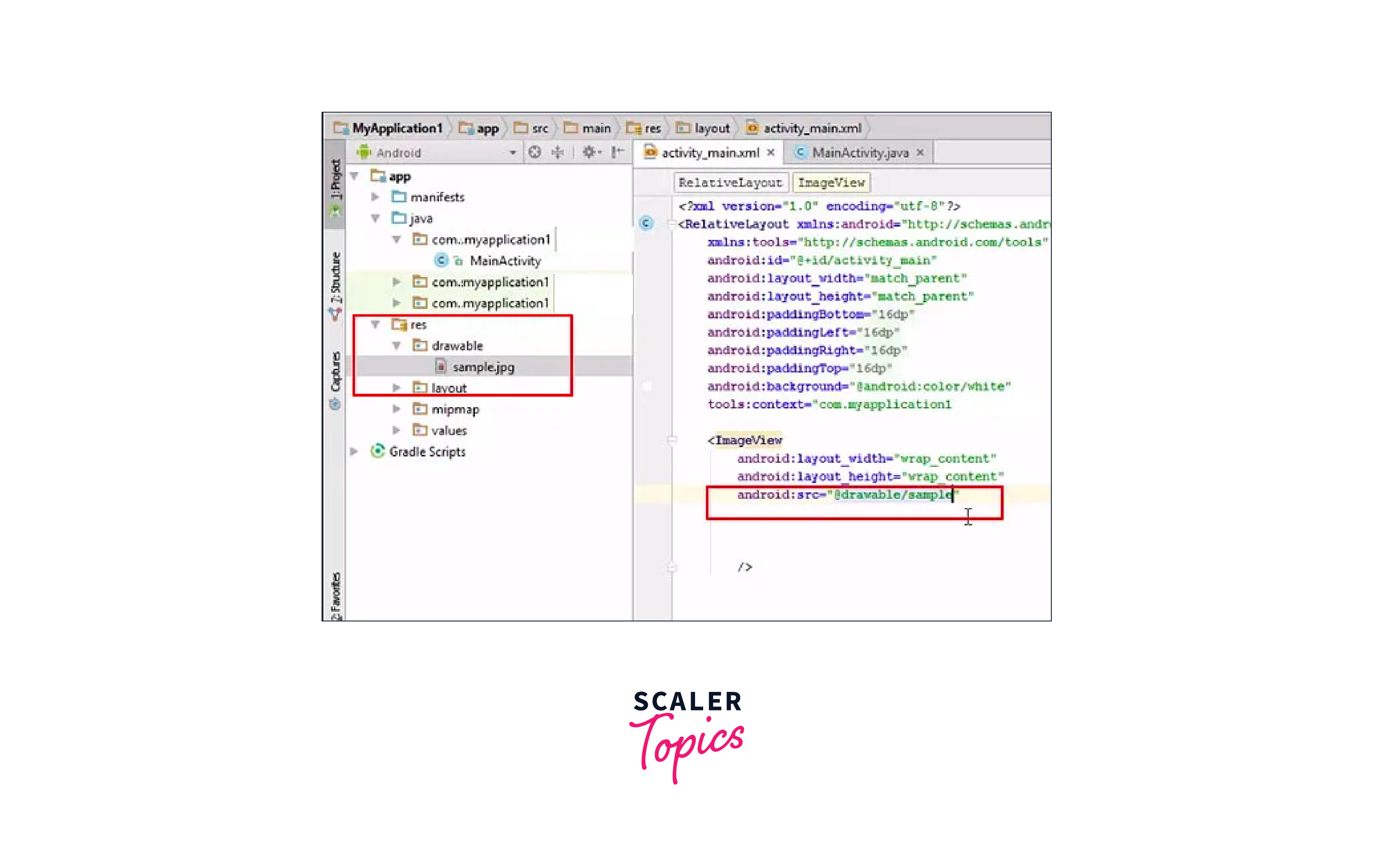 In this case, @drawable/my_image references an image resource named "my_image" that will be displayed in the ImageView.