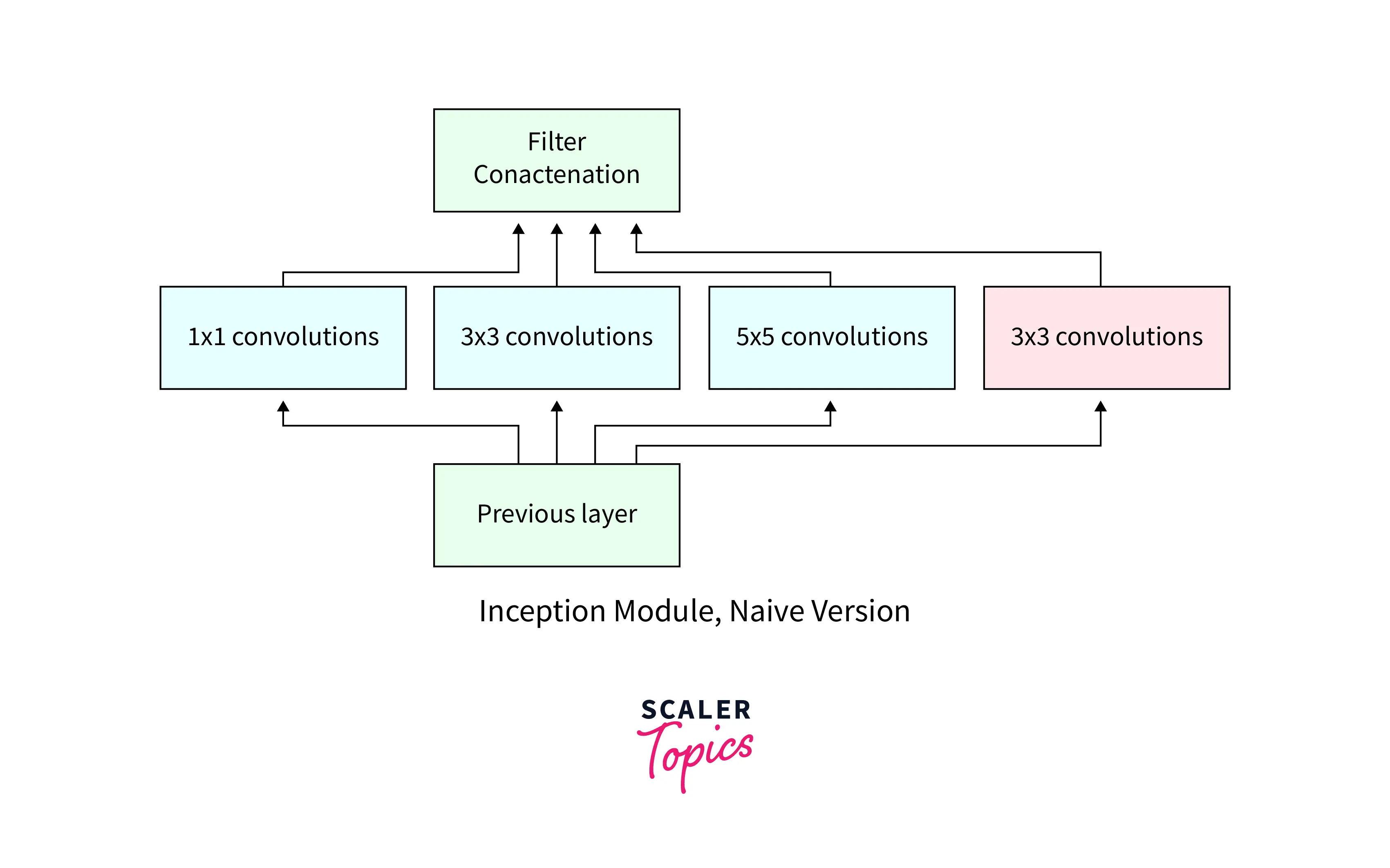 - Inception Module also includes a max pooling layer, which takes the maximum value from a set of non-overlapping regions of the input data.