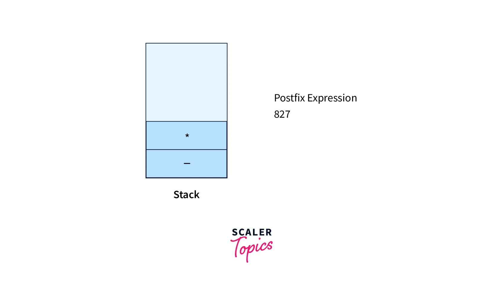 Let's take an example to find out the postfix for the infix notation with the help of the algorithm written above. The first step is to start Scanning the Infix Notation from Left to Right and further follow the rules to get the required expression.