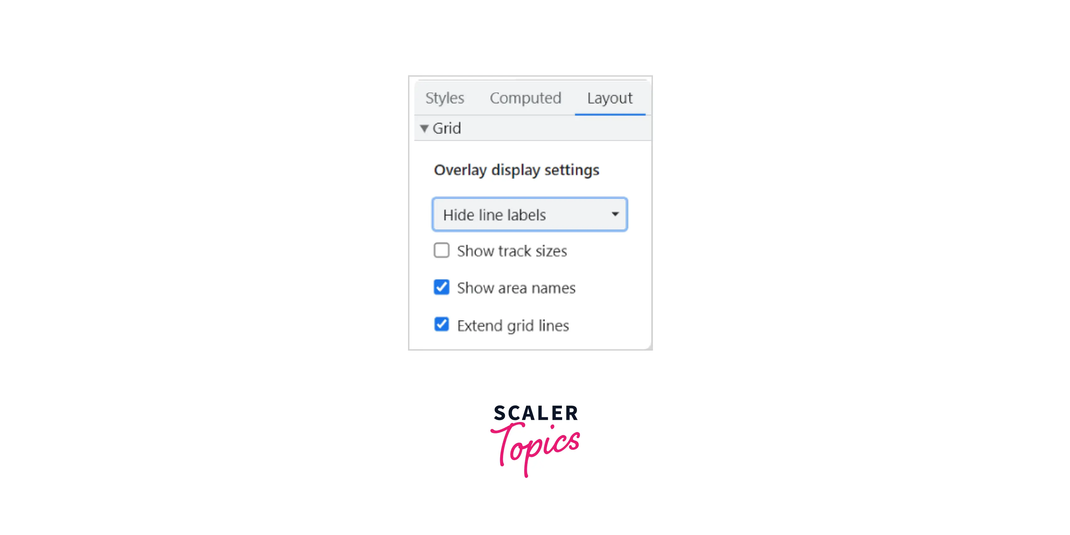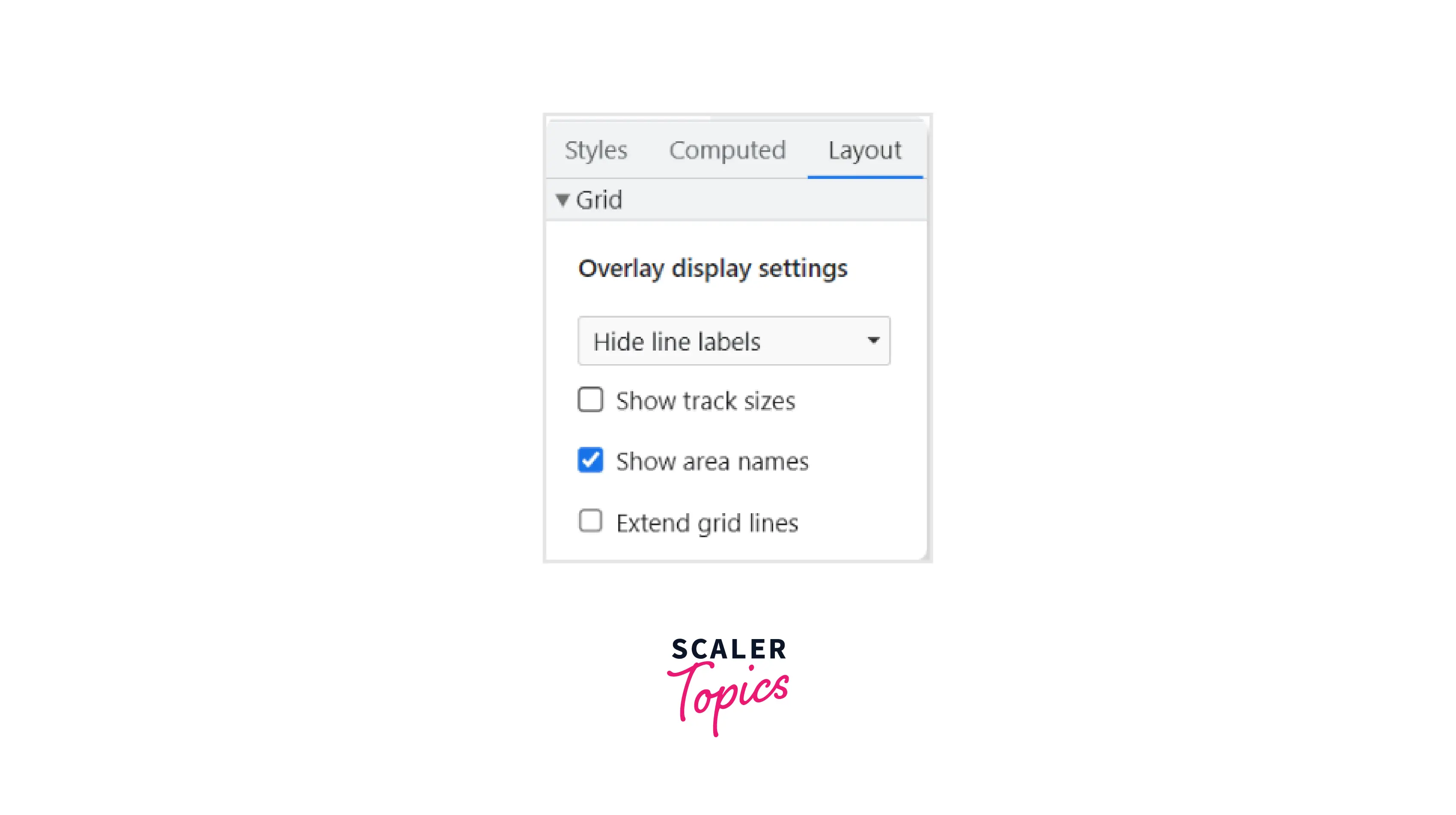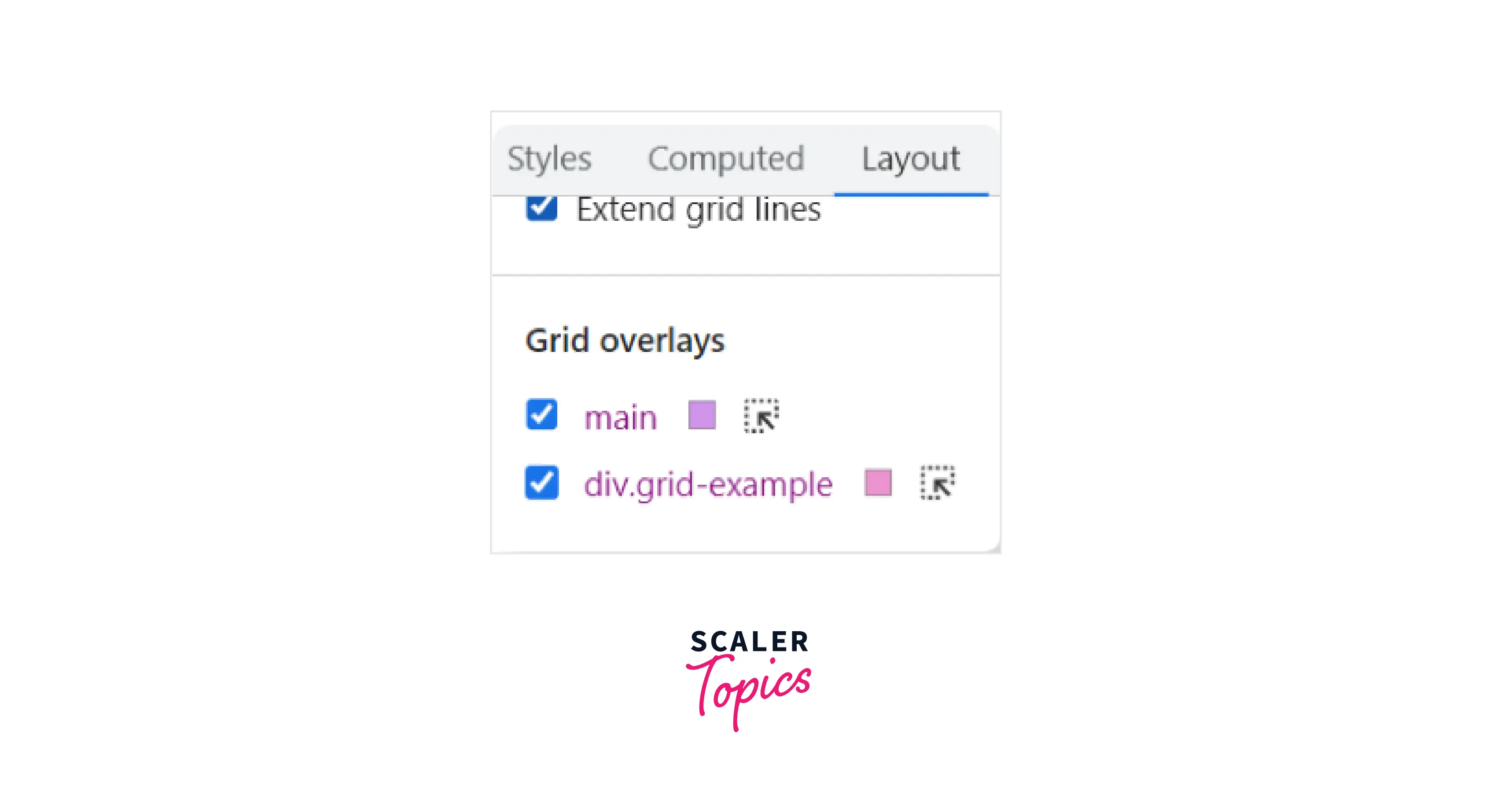Grid Overlays shows the different areas where display: grid or display: inline-grid and you'll be provided with checkboxes to select one or multiple grids on which you need to examine using grid lines.