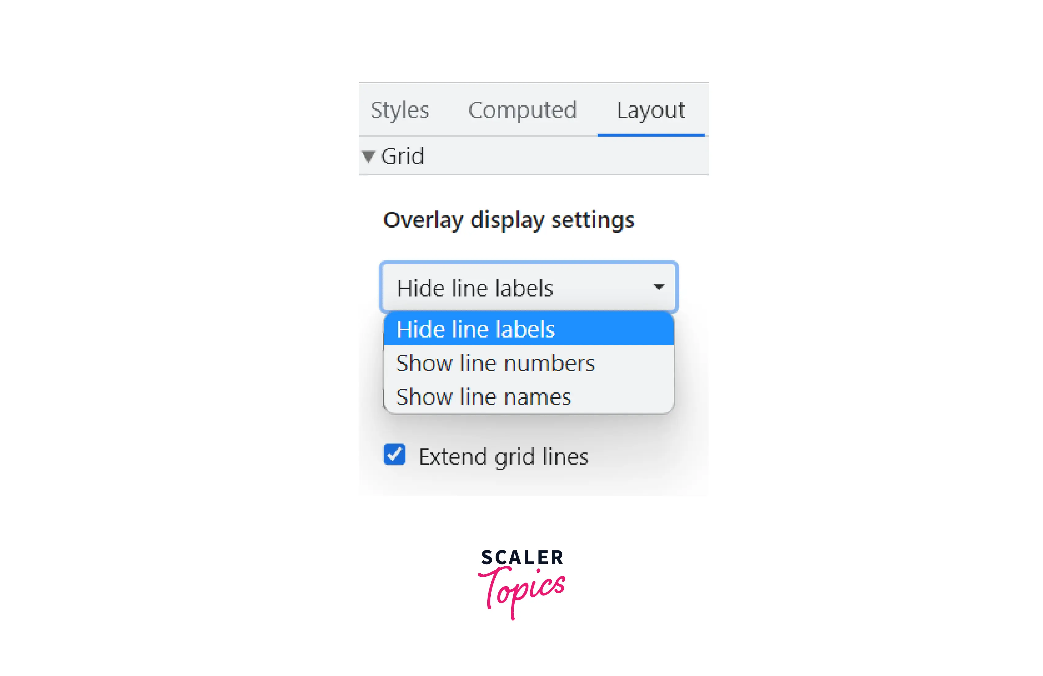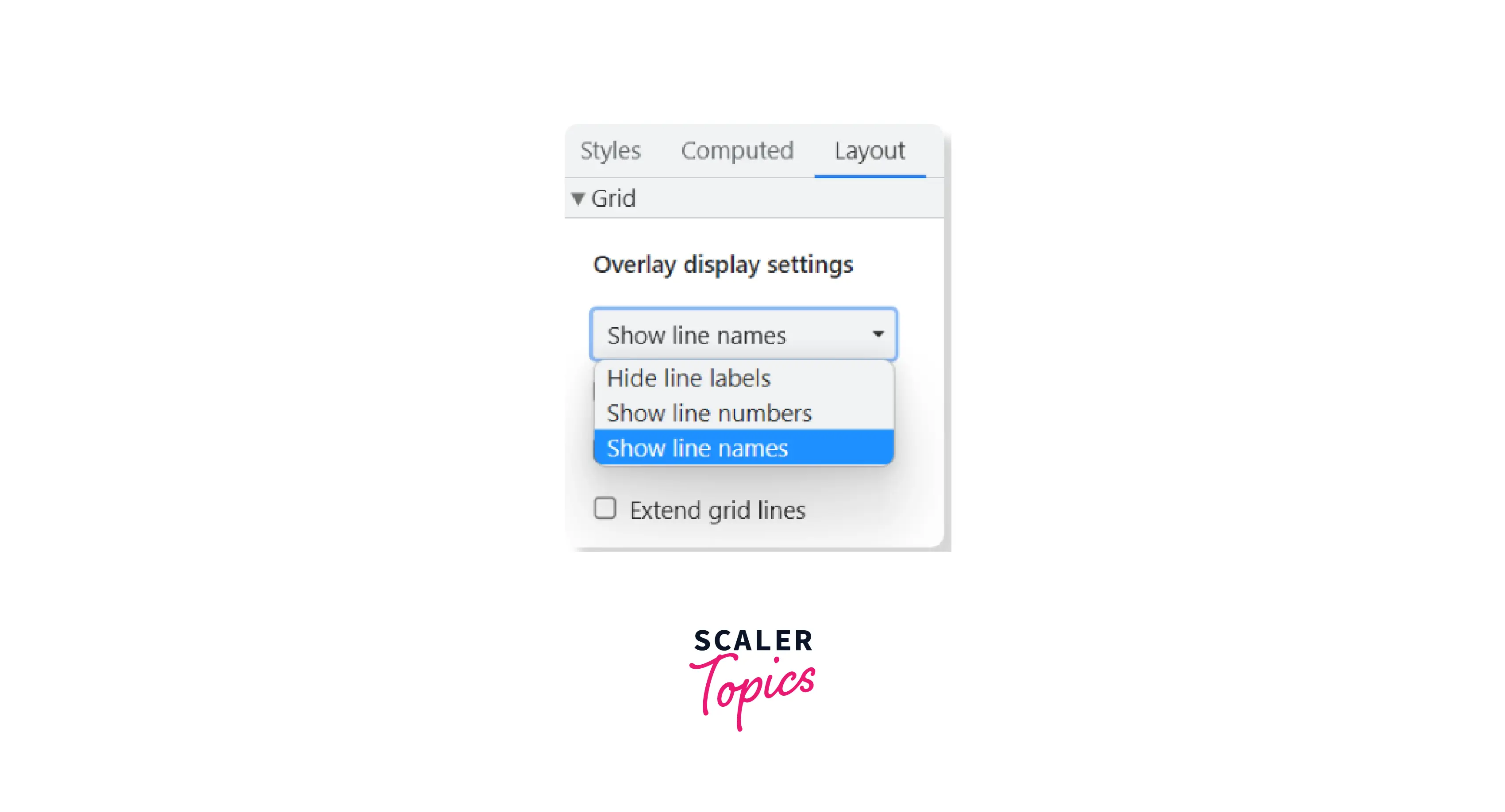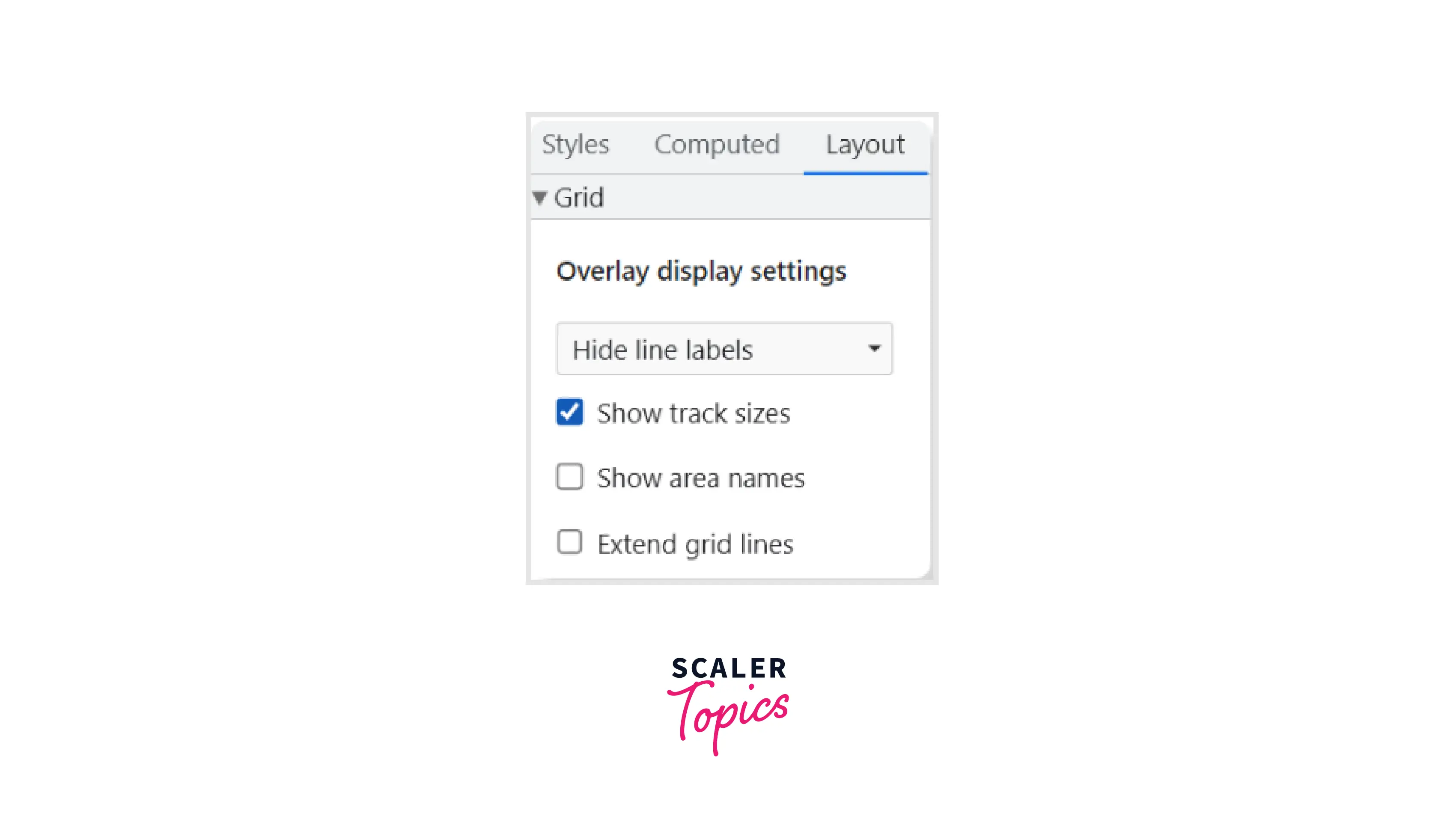 Grid Overlays shows the different areas where display: grid or display: inline-grid and you'll be provided with checkboxes to select one or multiple grids on which you need to examine using grid lines.