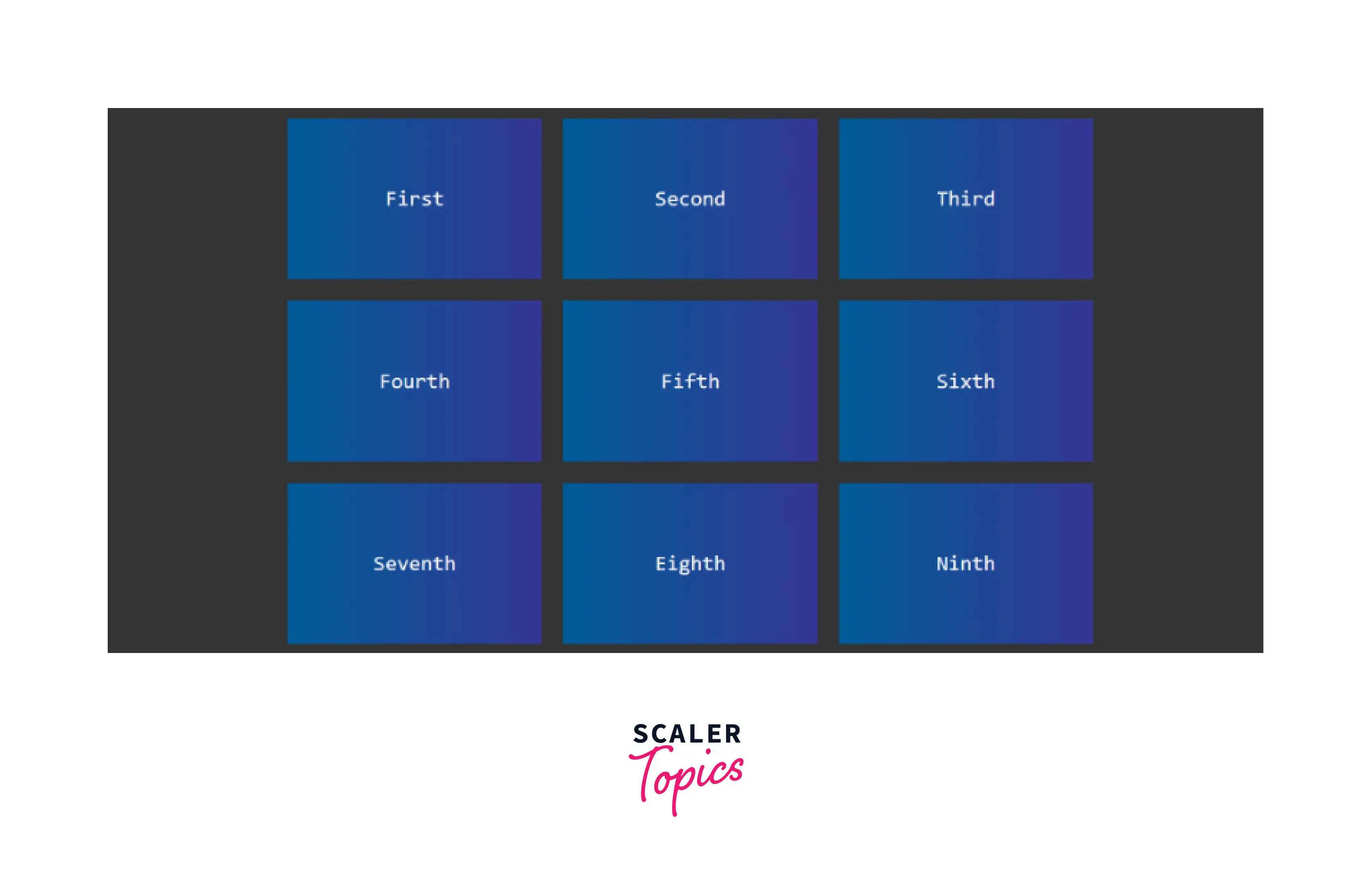 Let us consider an example of CSS grids. The HTML and CSS code for the same has been provided below.