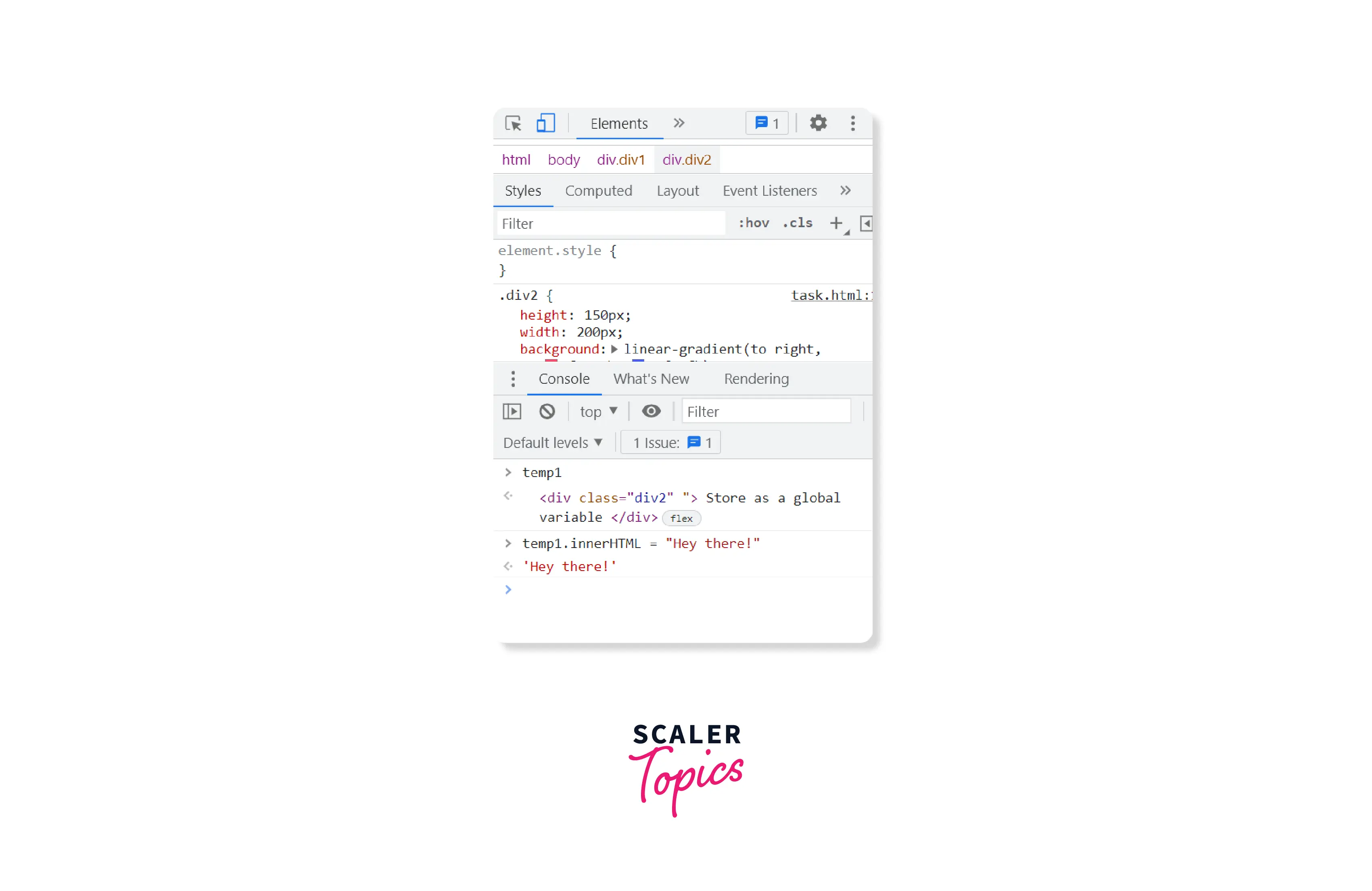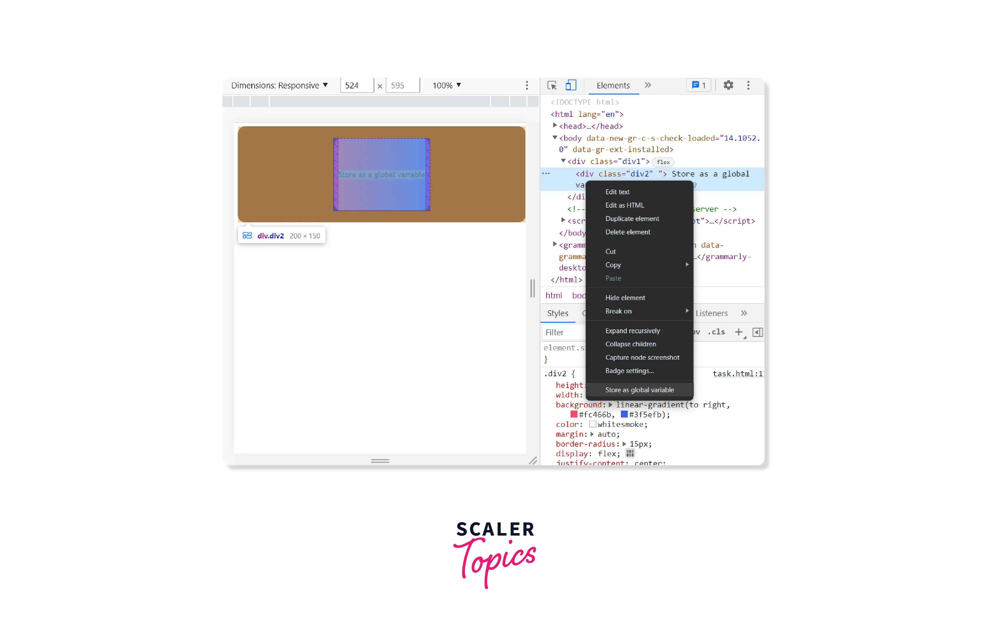 What if you need to access an HTML element and that too without providing a reference to it? Although we do know that the use of DOM methods such as document.querySelector and document.getElementById can help you get the reference. However, for debugging purposes, Store as a global variable will be a great advantage.