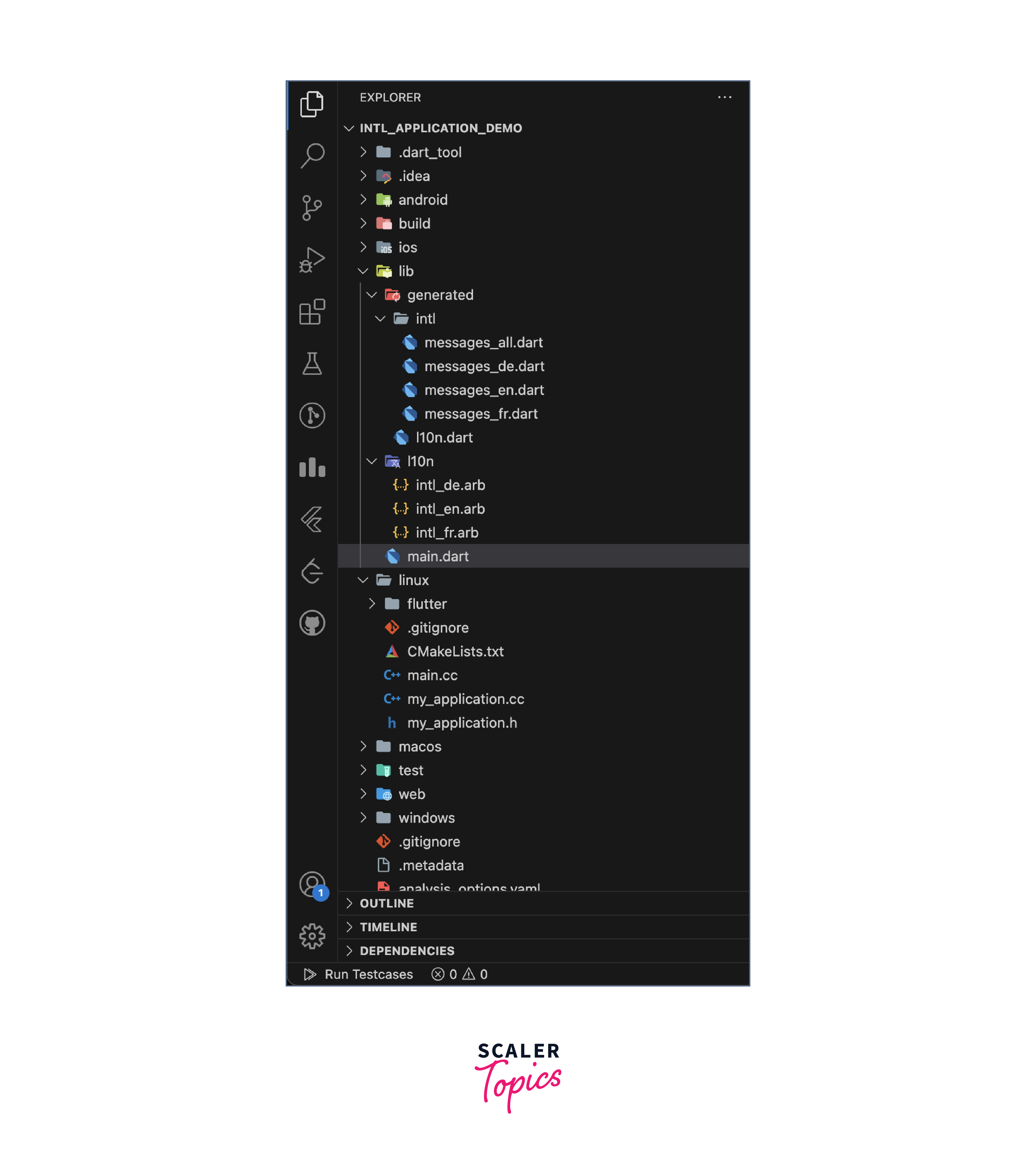 After you finsih setting up the intl library in flutter, your project structure will look something like this: